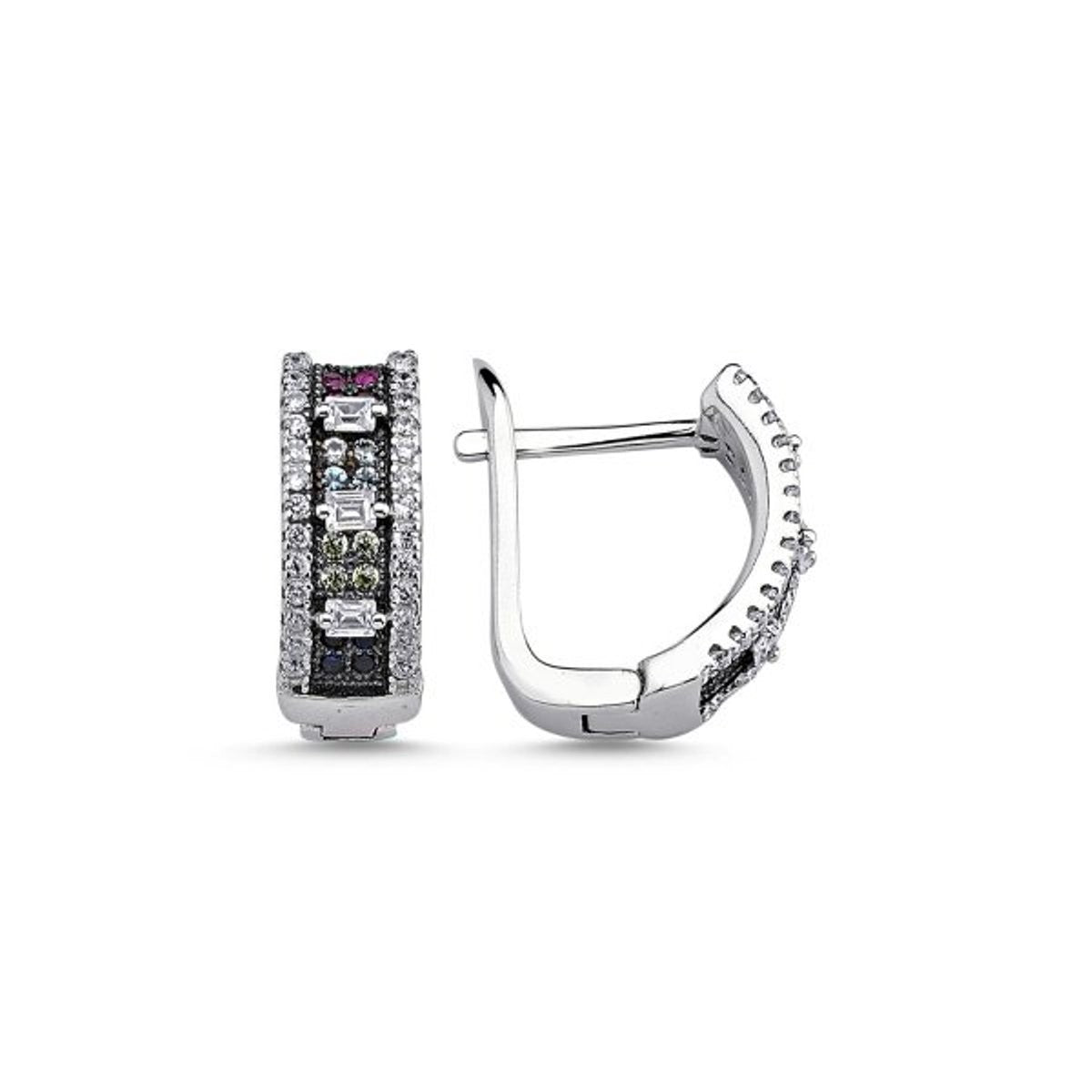 Sidabriniai rodžiuoti auskarai su spalvotais cirkoniais angl. užsegimu