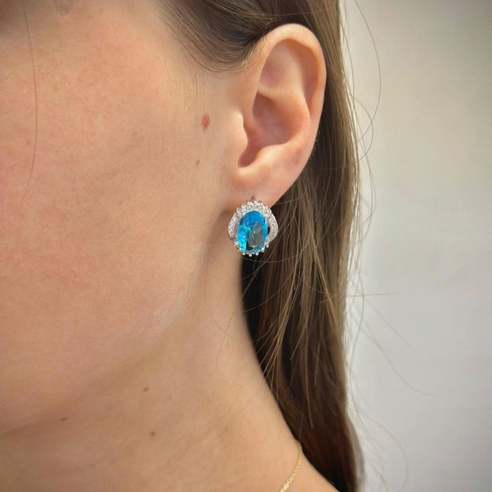 Sidabriniai rodžiuoti auskarai su žydru cirkoniu