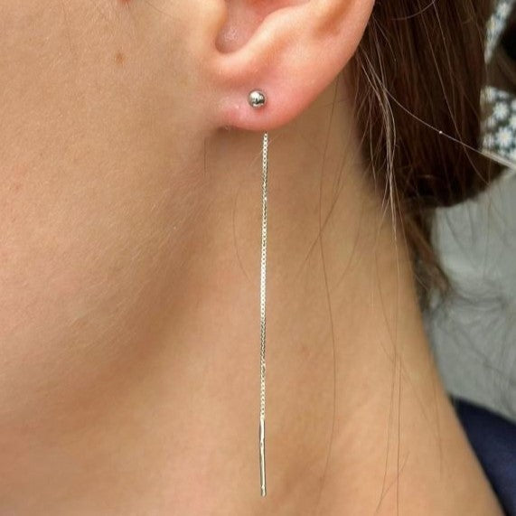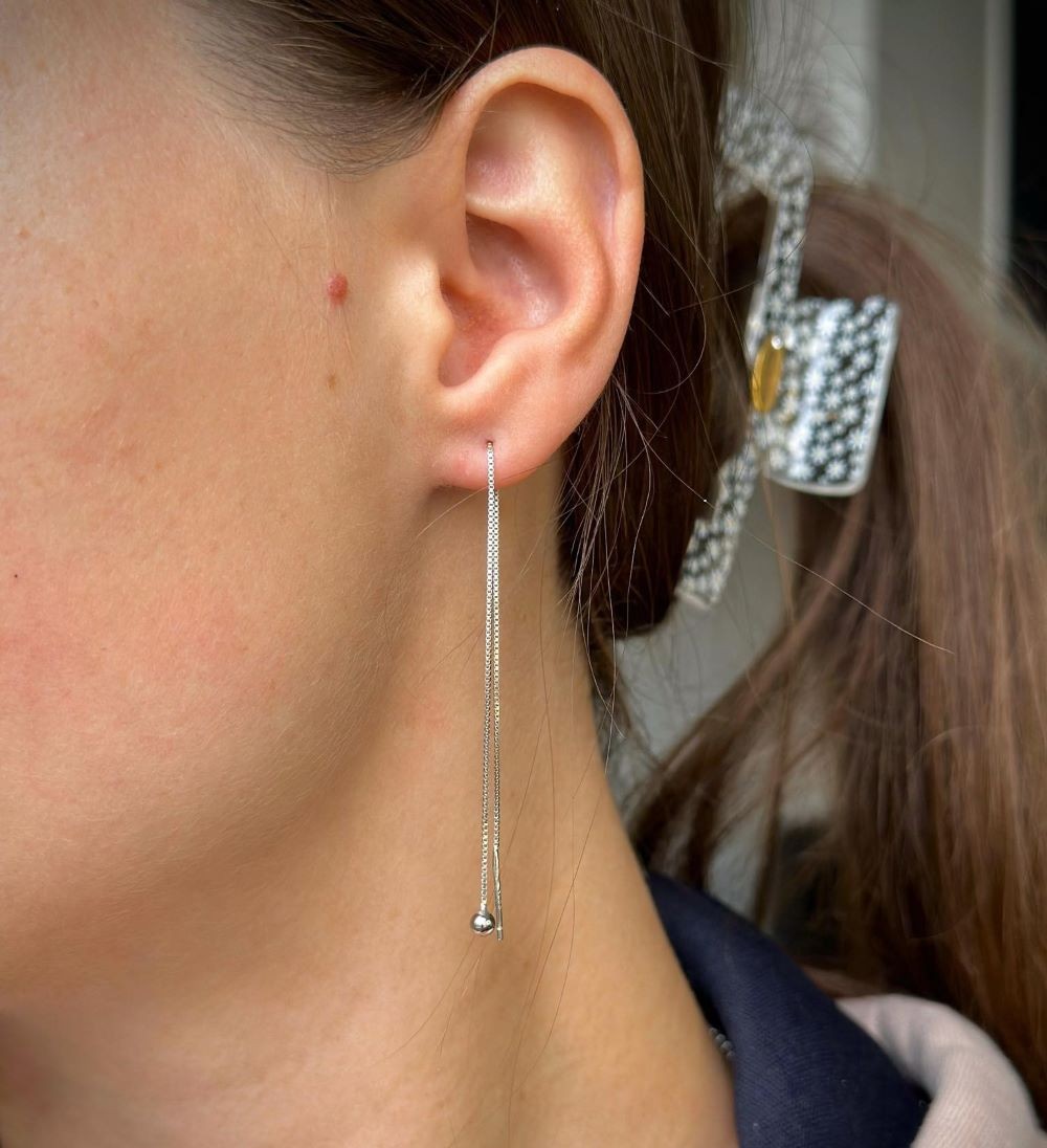 Sidabriniai rodžiuoti kabantys auskarai su grandinėle
