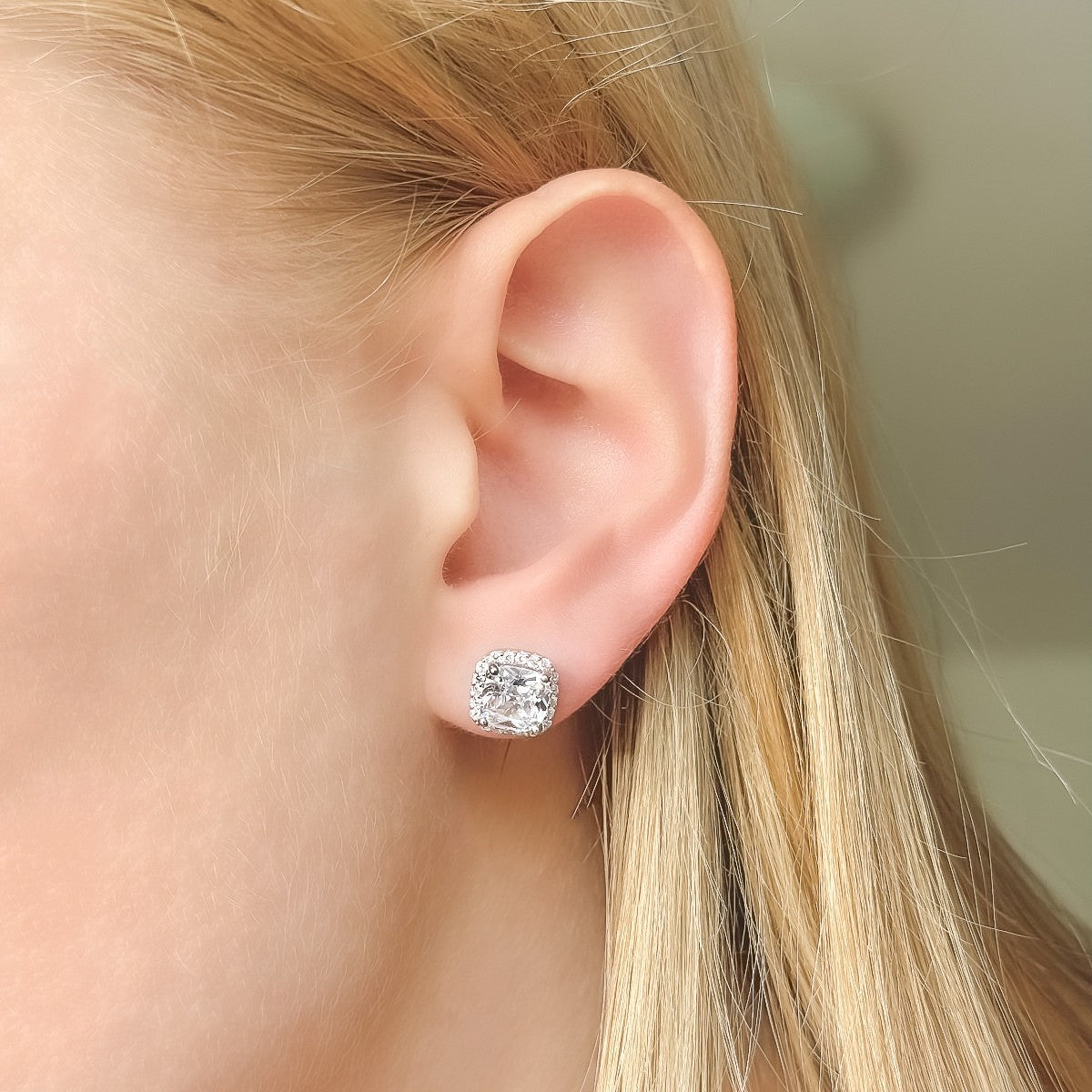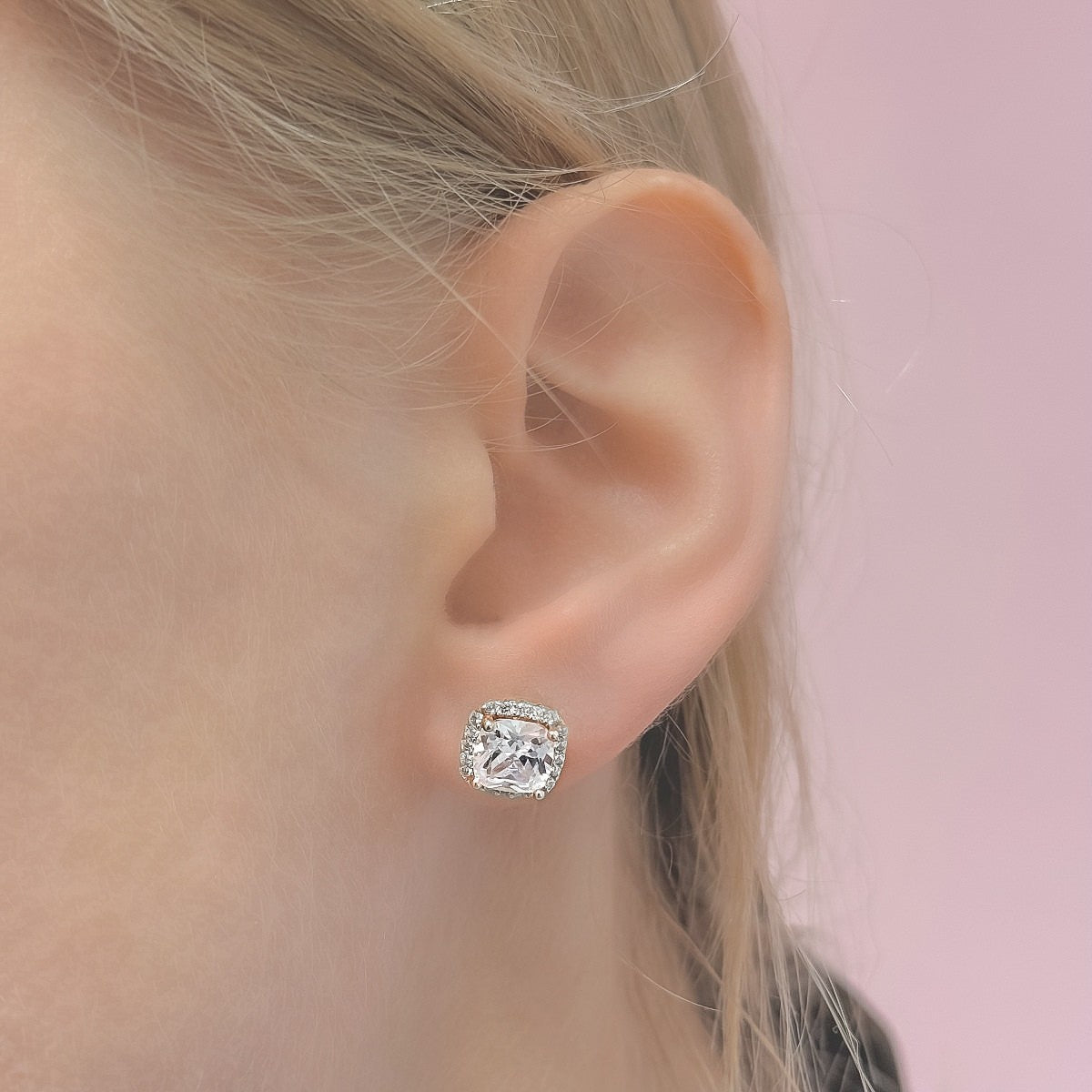 Sidabriniai rodžiuoti kvadratiniai auskarai su cirkoniu