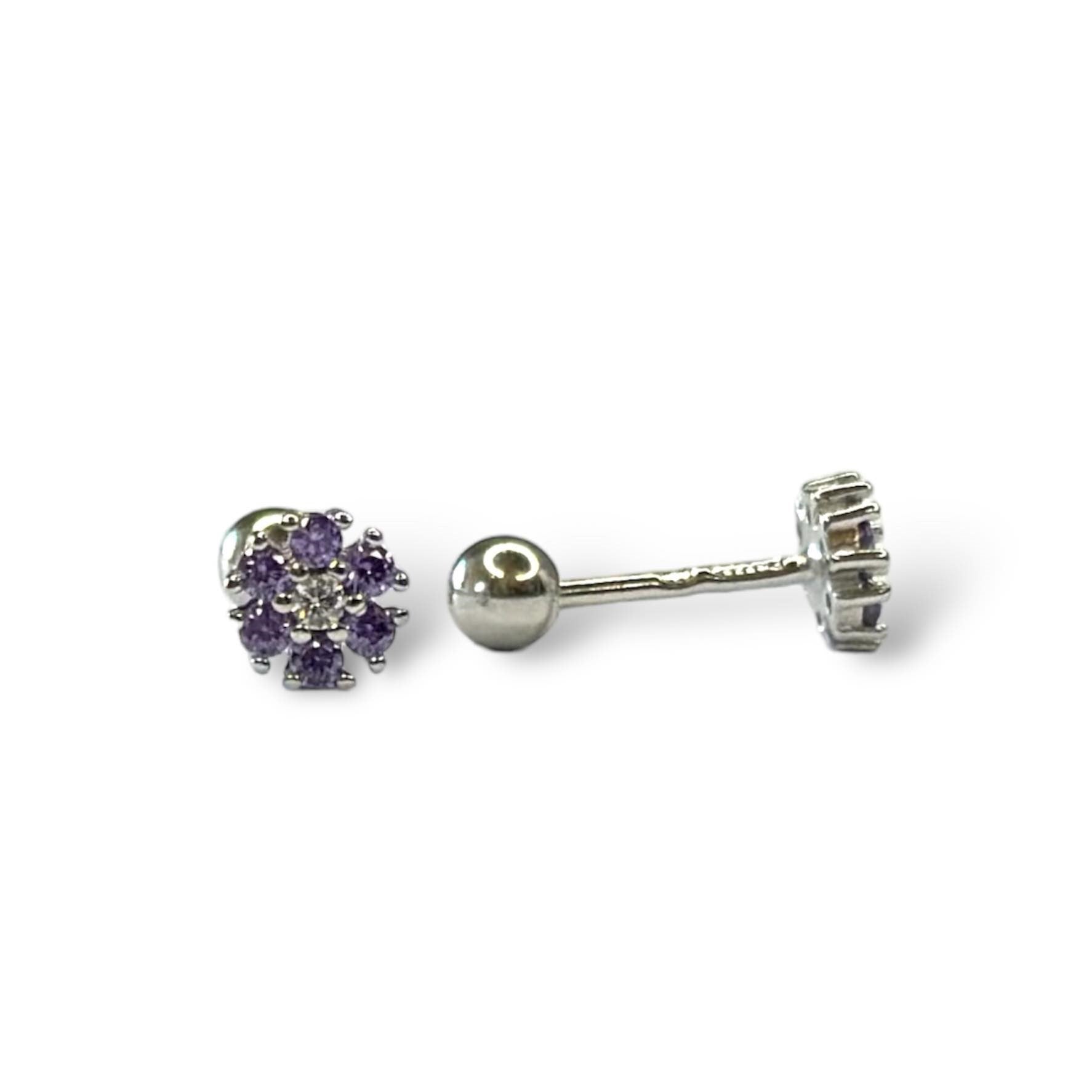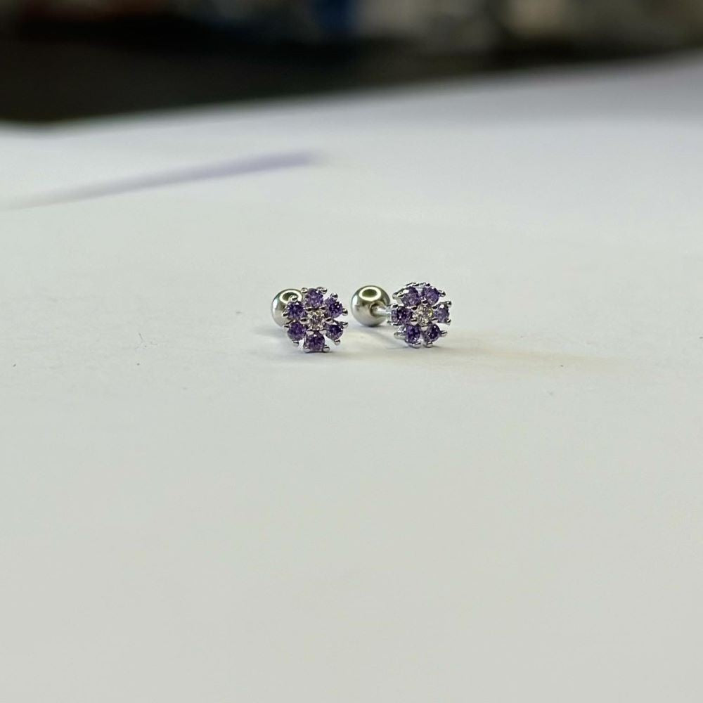 Sidabriniai rodžiuoti užsukami auskarai su alyviniu cirkoniu