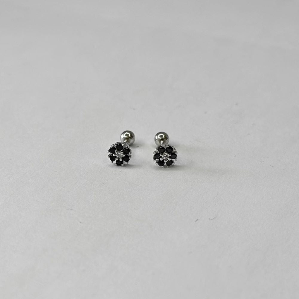 Sidabriniai užsukami auskarai su juodu cirkoniu