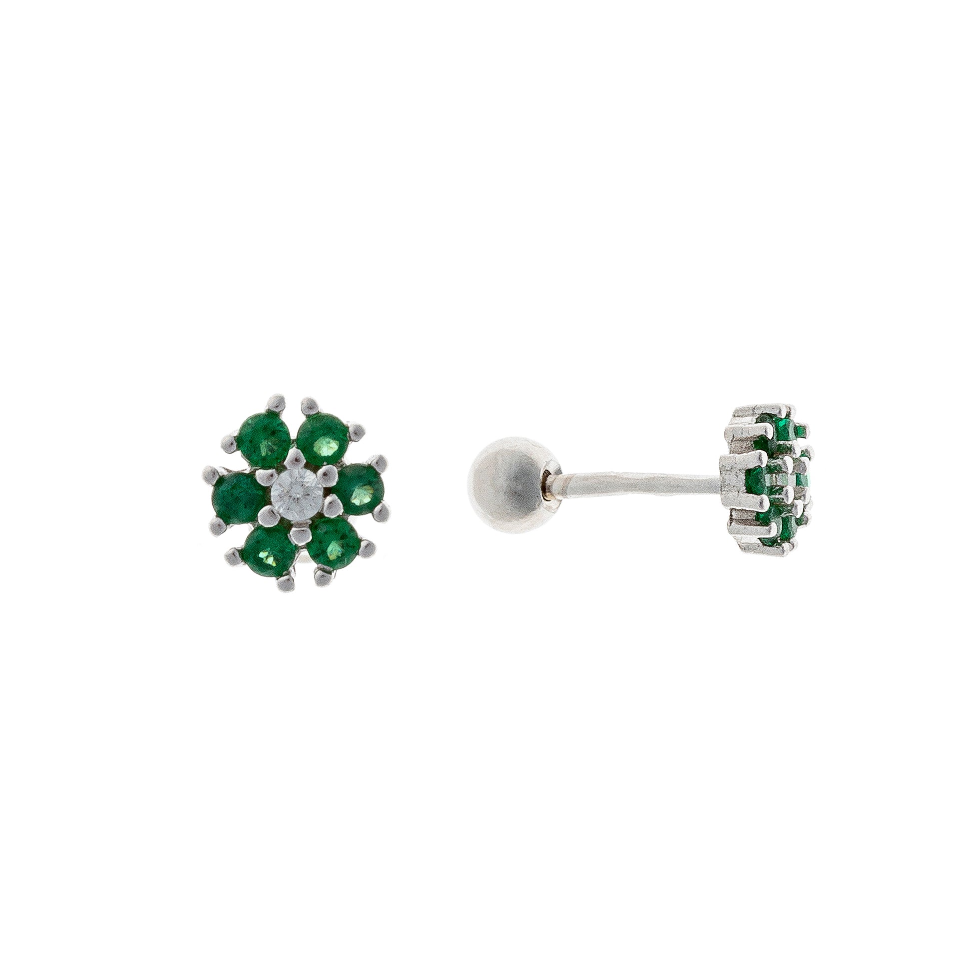 Sidabriniai užsukami auskarai su žaliu ir baltu cirkoniu