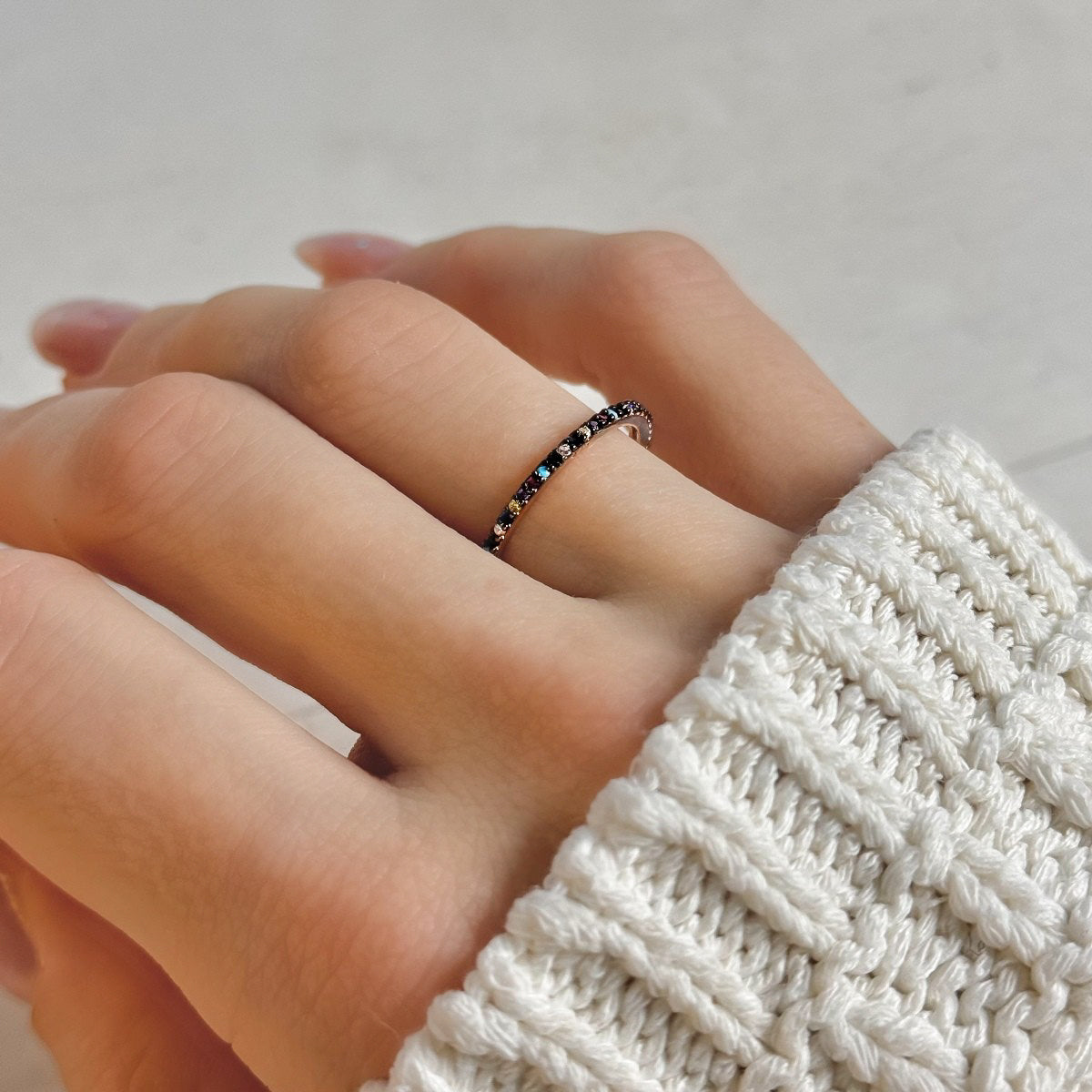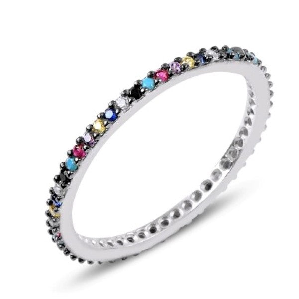 Sidabrinis 1mm žiedelis su spalvotu cirkoniu
