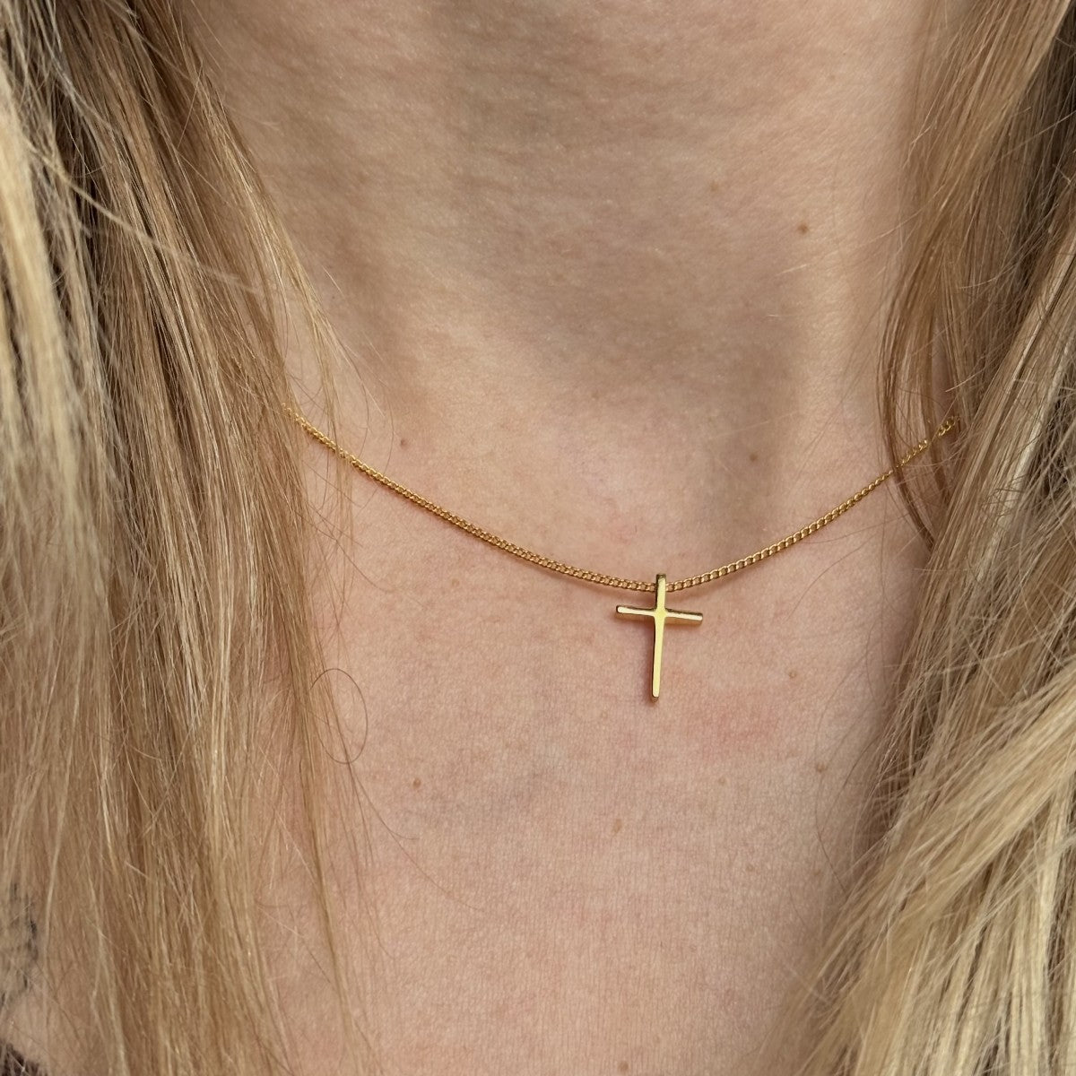 Sidabrinis auksuotas kryželis su grandinėle