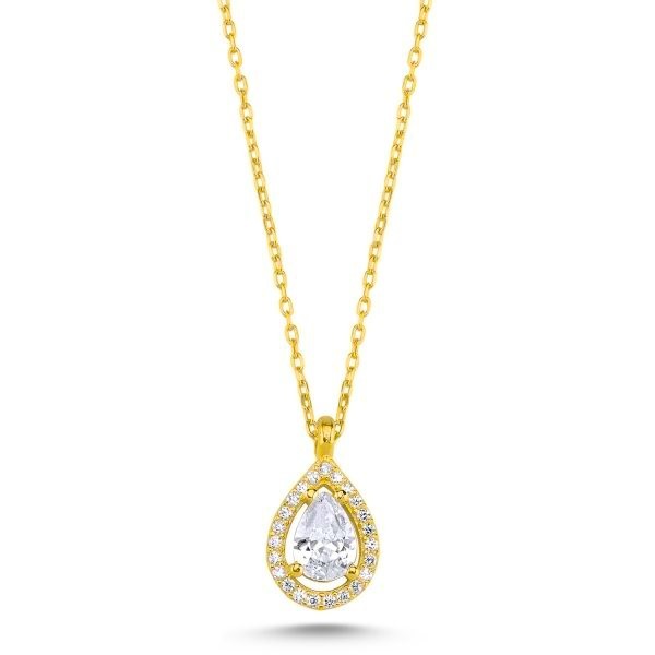 Sidabrinis auksuotas lašo formos pakabukas su cirkoniu ir grandinėle