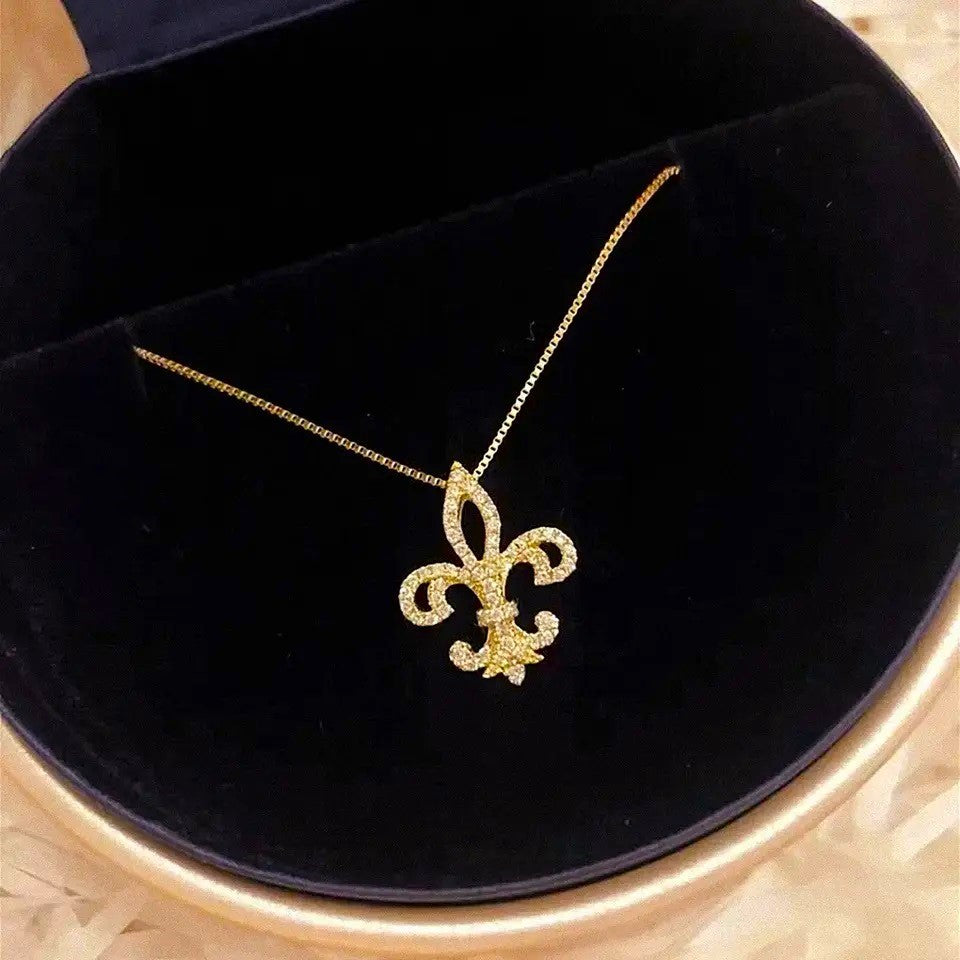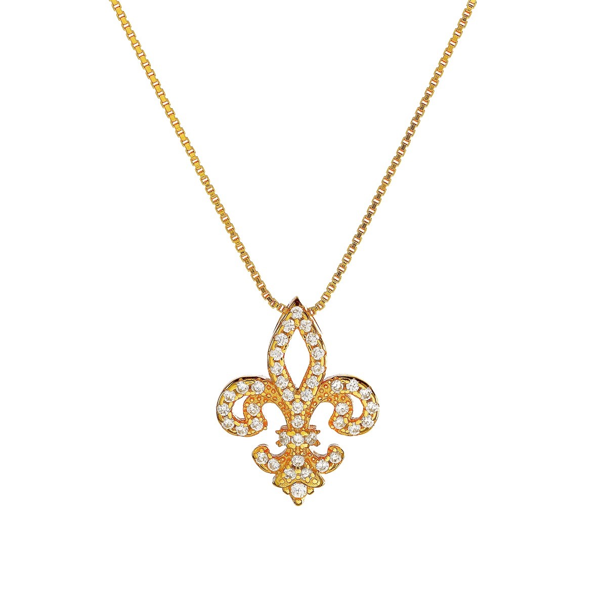 Sidabrinė auksuota lelija su cirkoniais ir grandinėle