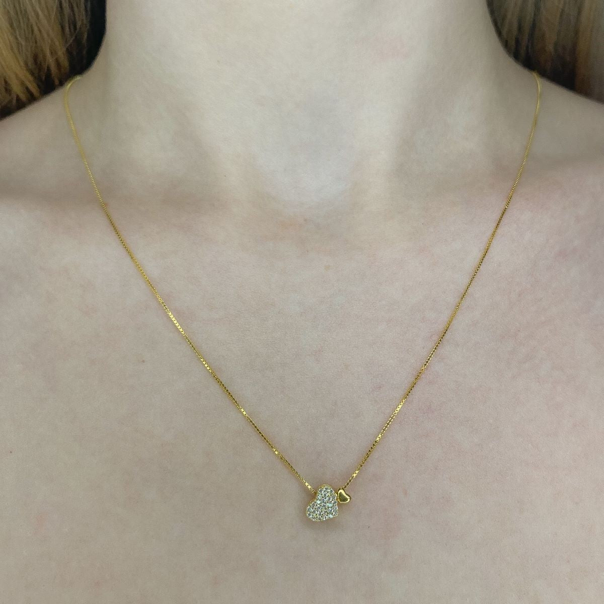 Sidabrinis auksuotas pakabukas su širdelėmis ir grandinėle