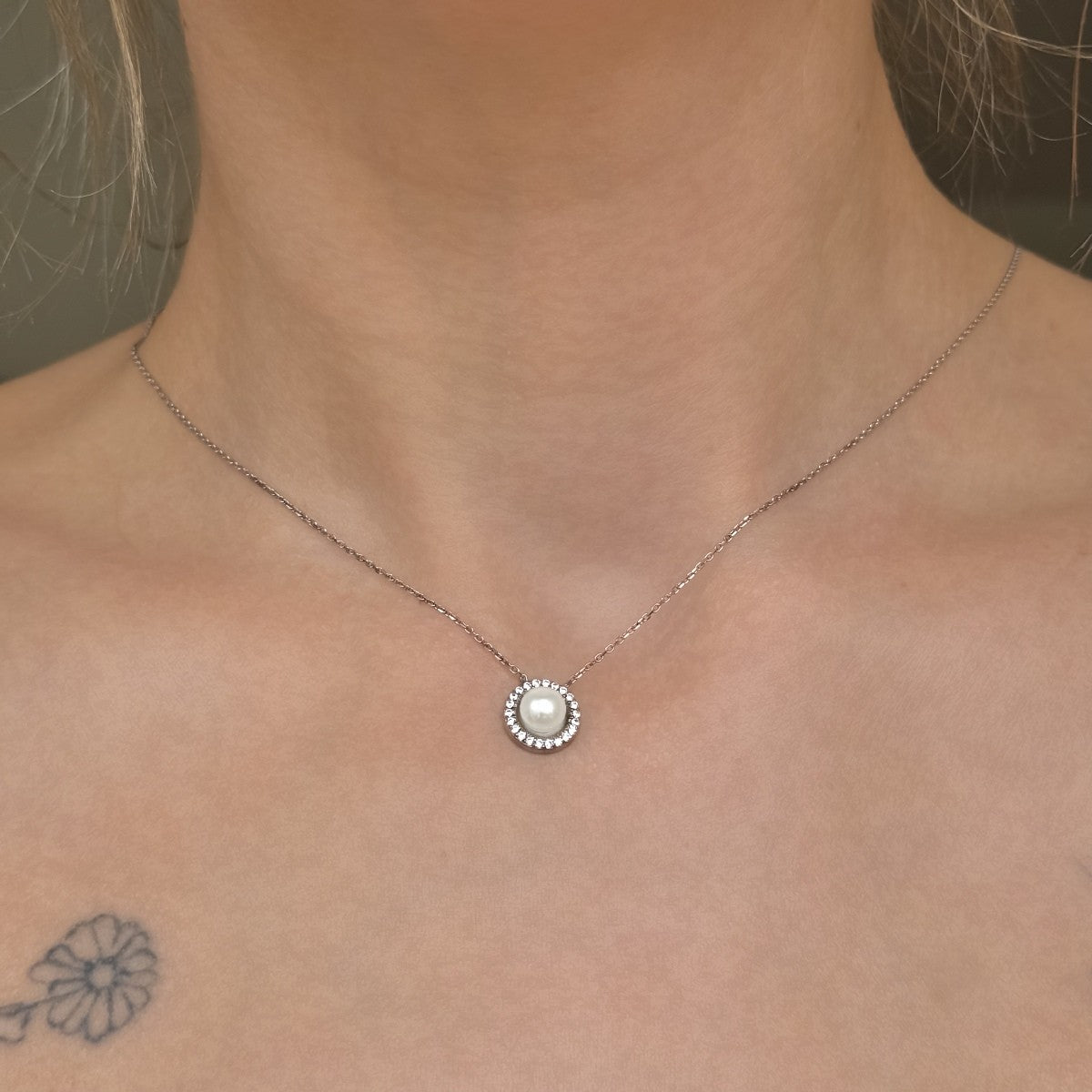 Sidabrinis pakabukas su tikru perlu ir cirkoniais