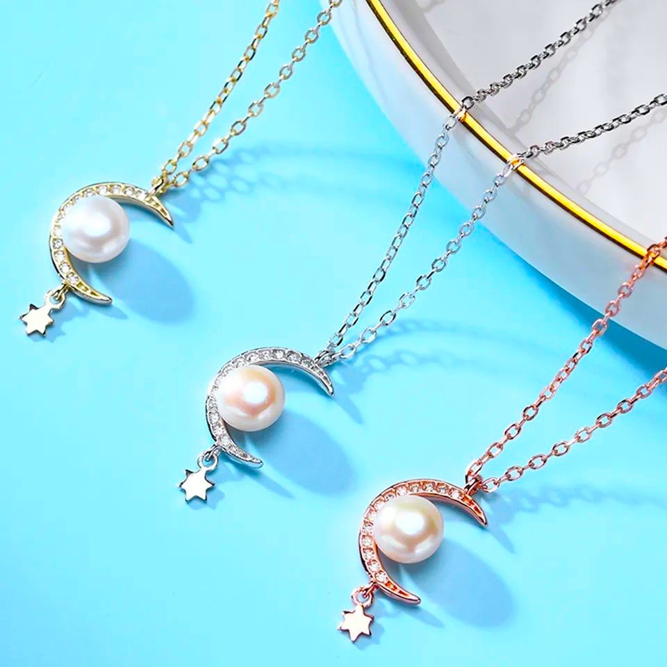 Sidabrinis auksuotas pakabukas su tikru perlu ir grandinėle
