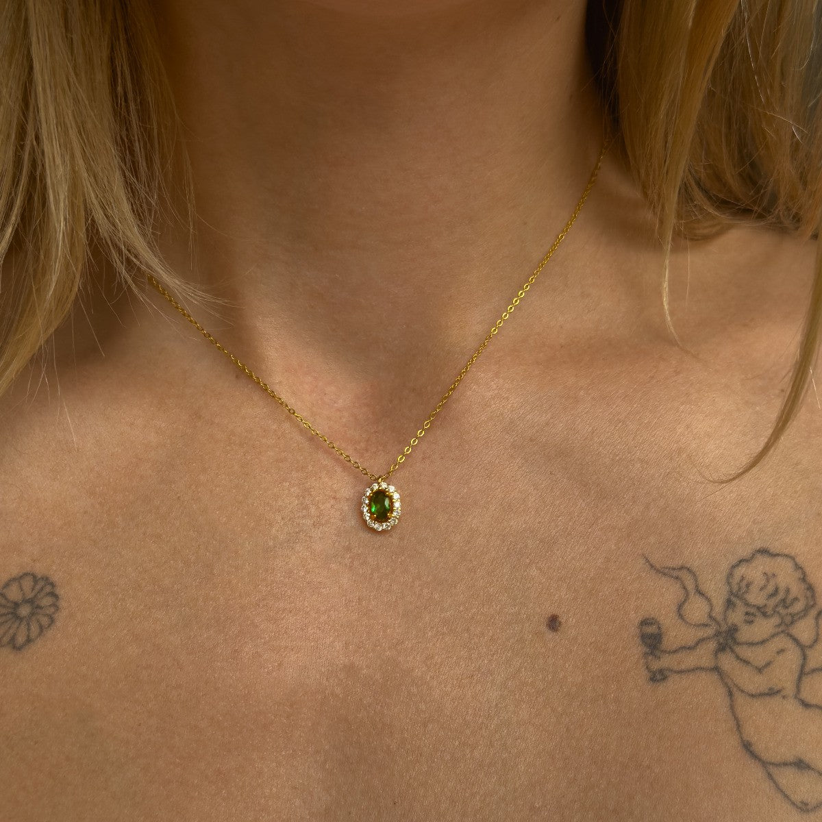 Sidabrinis auksuotas pakabukas su žaliu cirkoniu ir grandinėle
