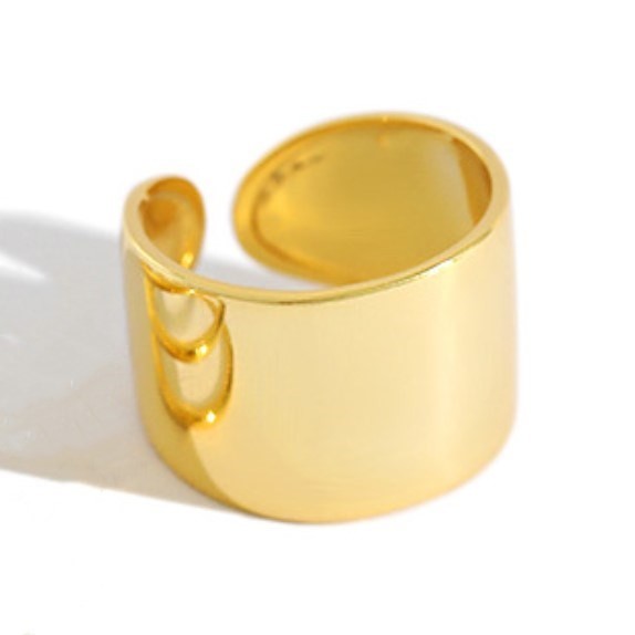 Sidabrinis auksuotas platus reguliuojamo dydžio žiedas