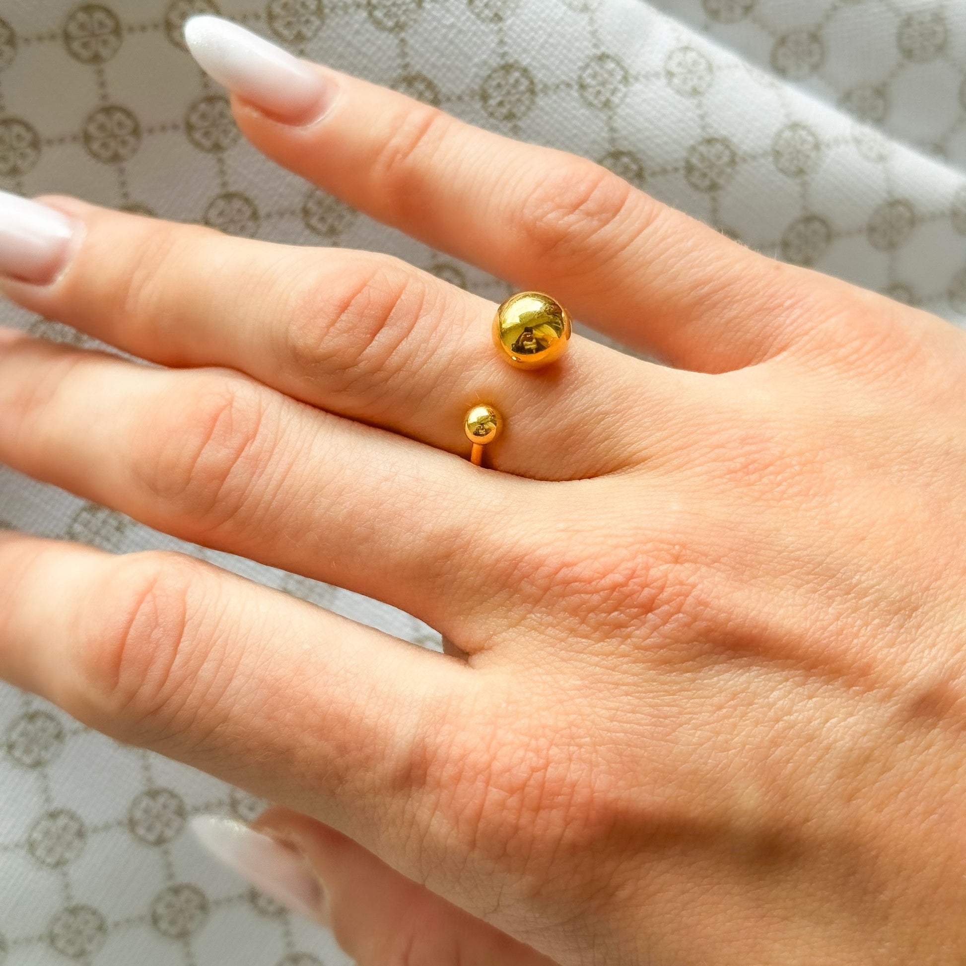 Sidabrinis auksuotas reg. dydžio žiedas su burbuliukais