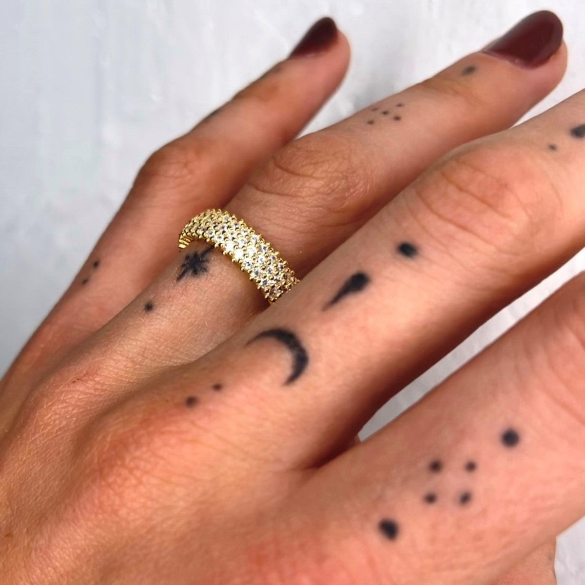 Sidabrinis auksuotas žiedas su 3 eilėmis cirkonių
