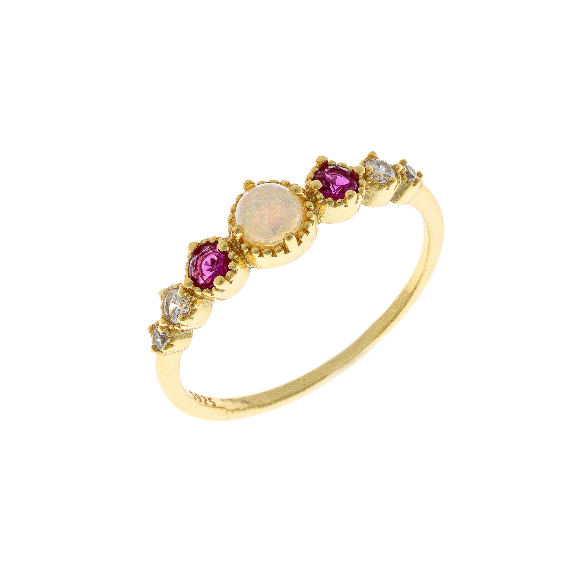 Sidabrinis auksuotas žiedas su opalu ir cirkonio kristalais