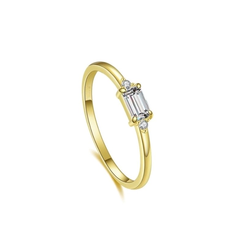 Sidabrinis auksuotas žiedas su pailgu cirkoniu