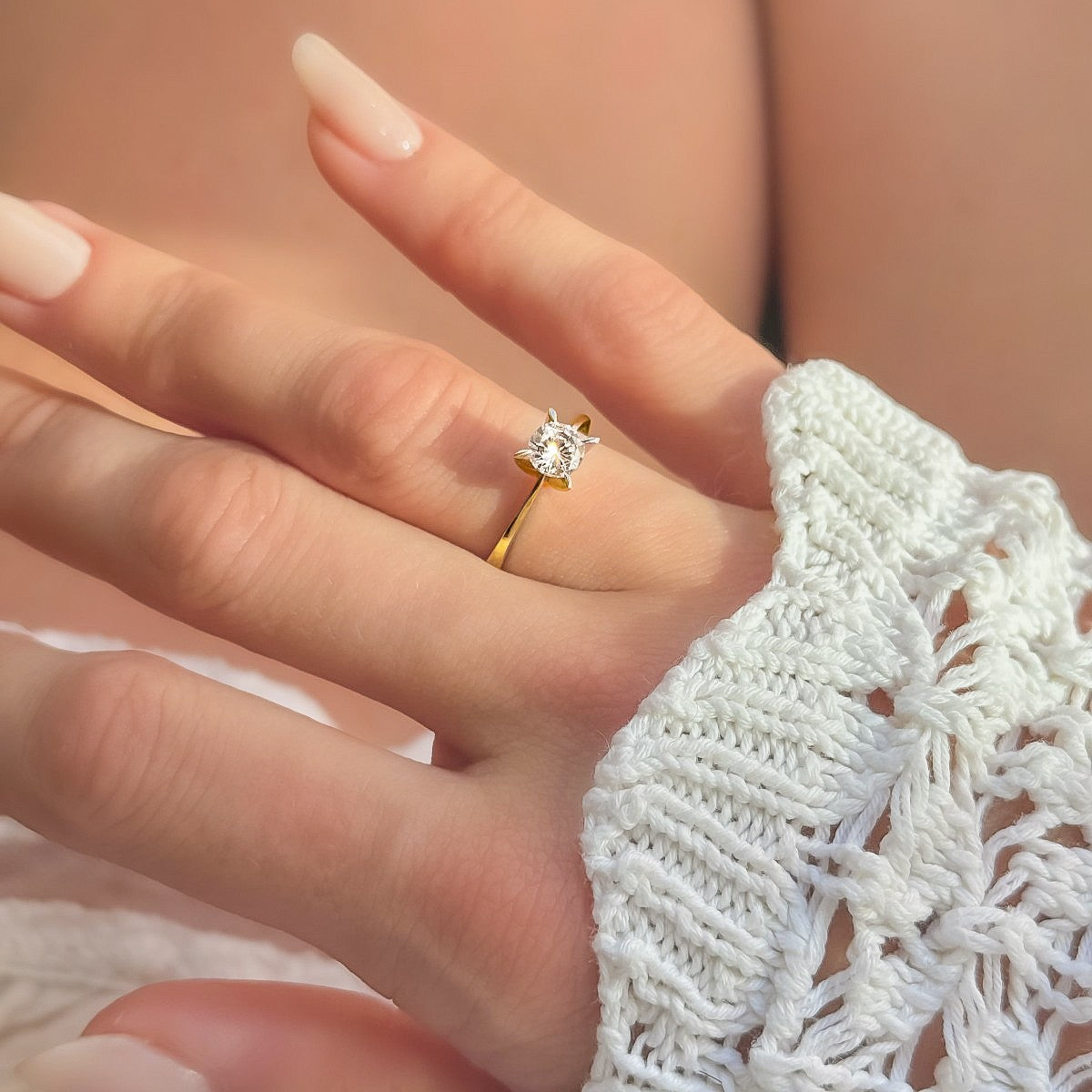 Žiedas dengtas šviesiu auksu.