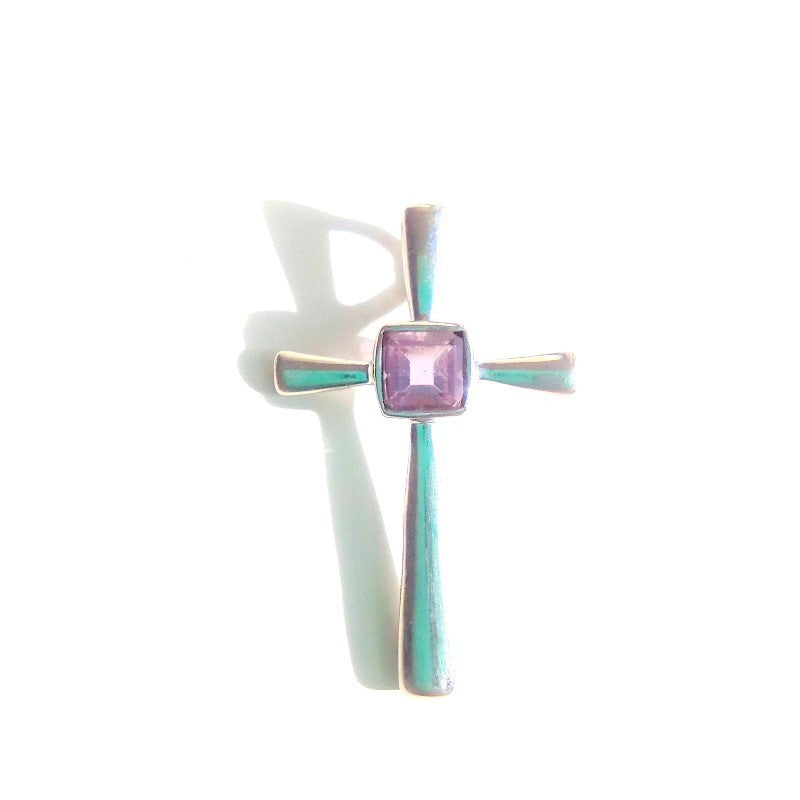 Sidabrinis kryželis su ametistu ir grandinėle