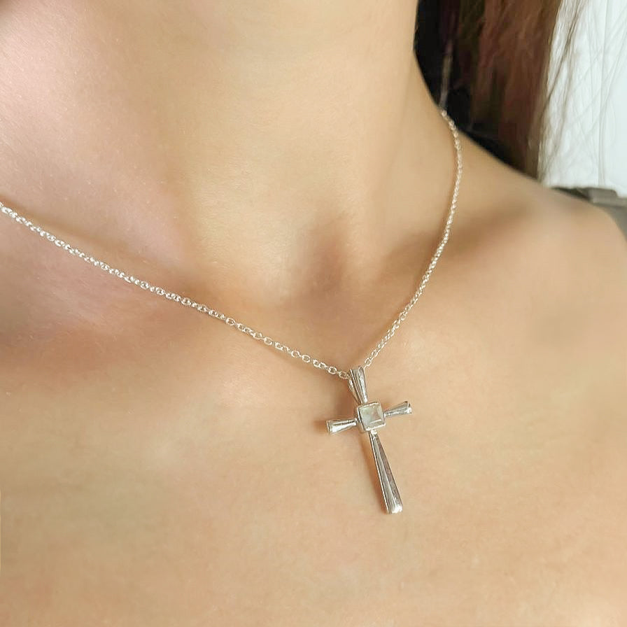 Sidabrinis kryželis su mėnulio akmeniu ir grandinėle