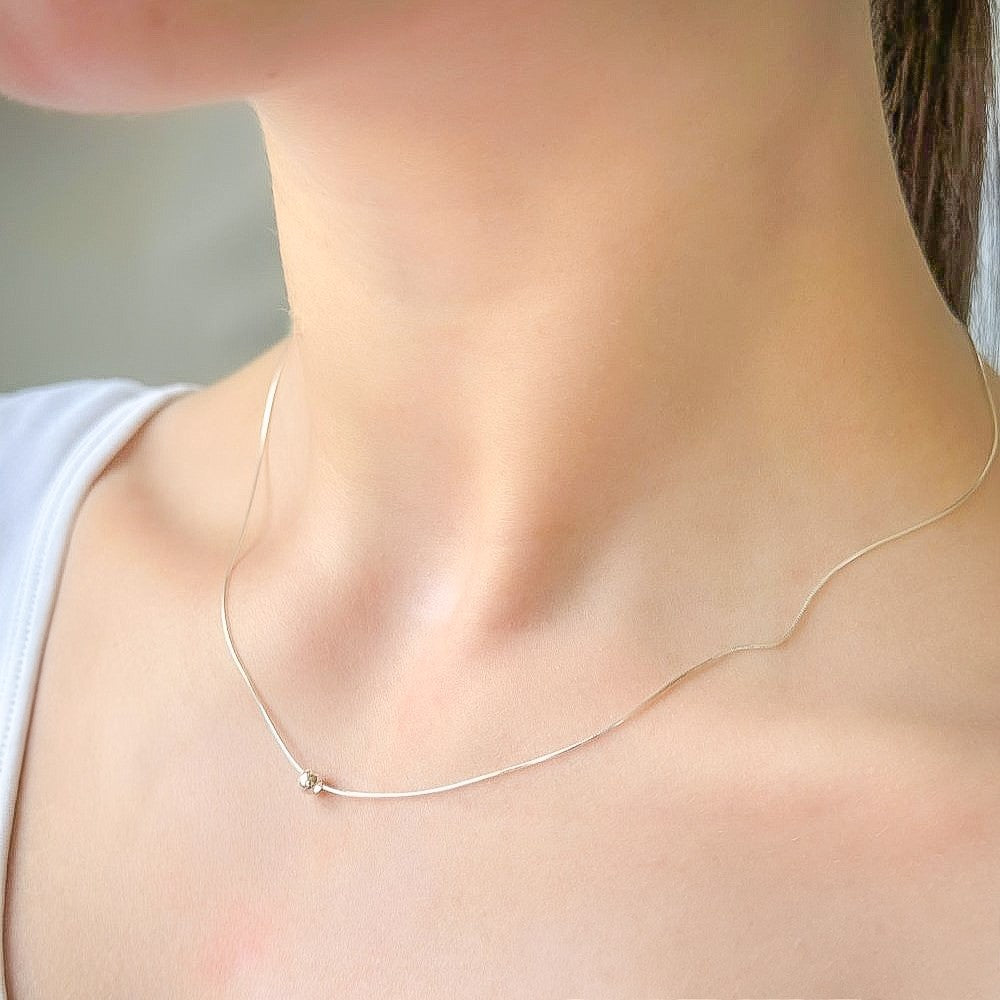 Sidabrinis minimalistinio stiliaus burbuliukas su grandinėle