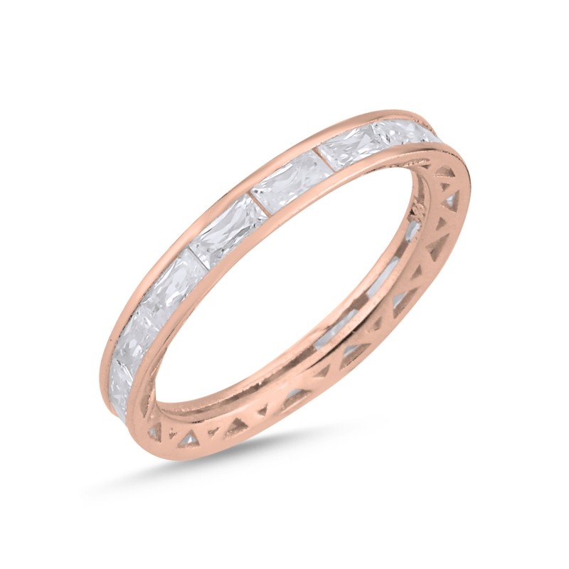 Sidabrinis paauksuotas 3mm pločio žiedas su pailgais cirkoniais