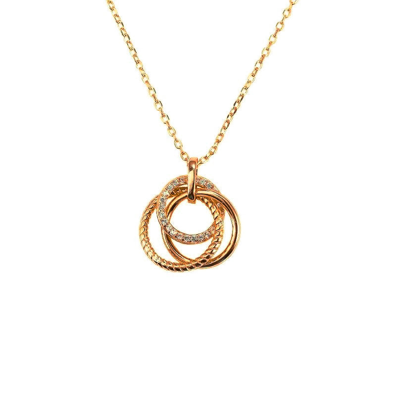 Sidabrinis paauksuotas apvalus pakabukas su cirkoniais ir grandinėle