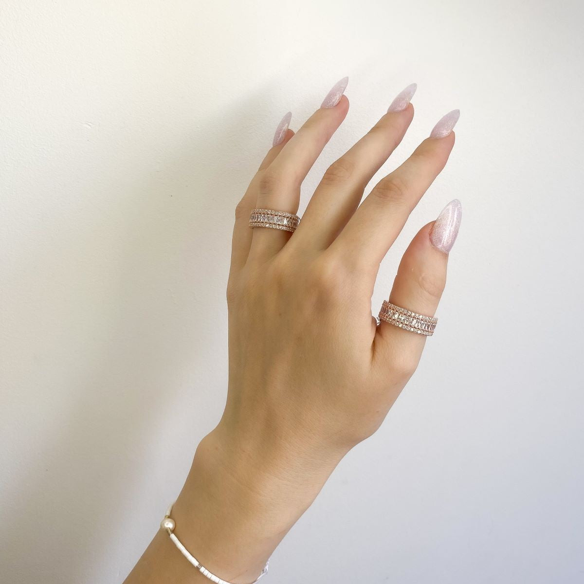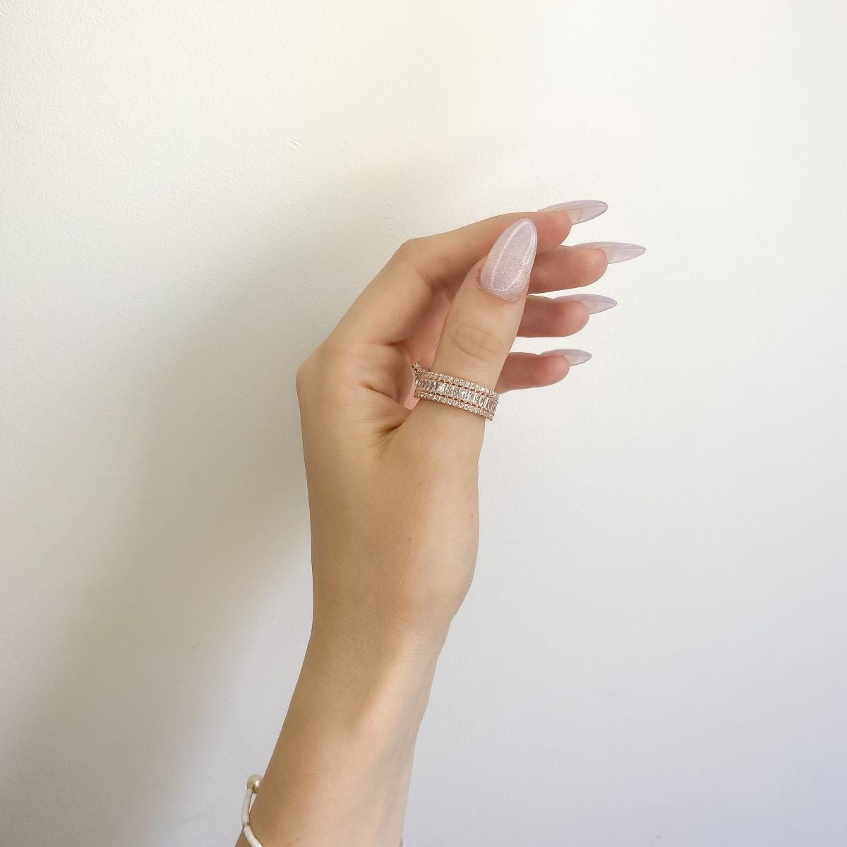 Sidabrinis paauksuotas žiedas su pailgais cirkoniais