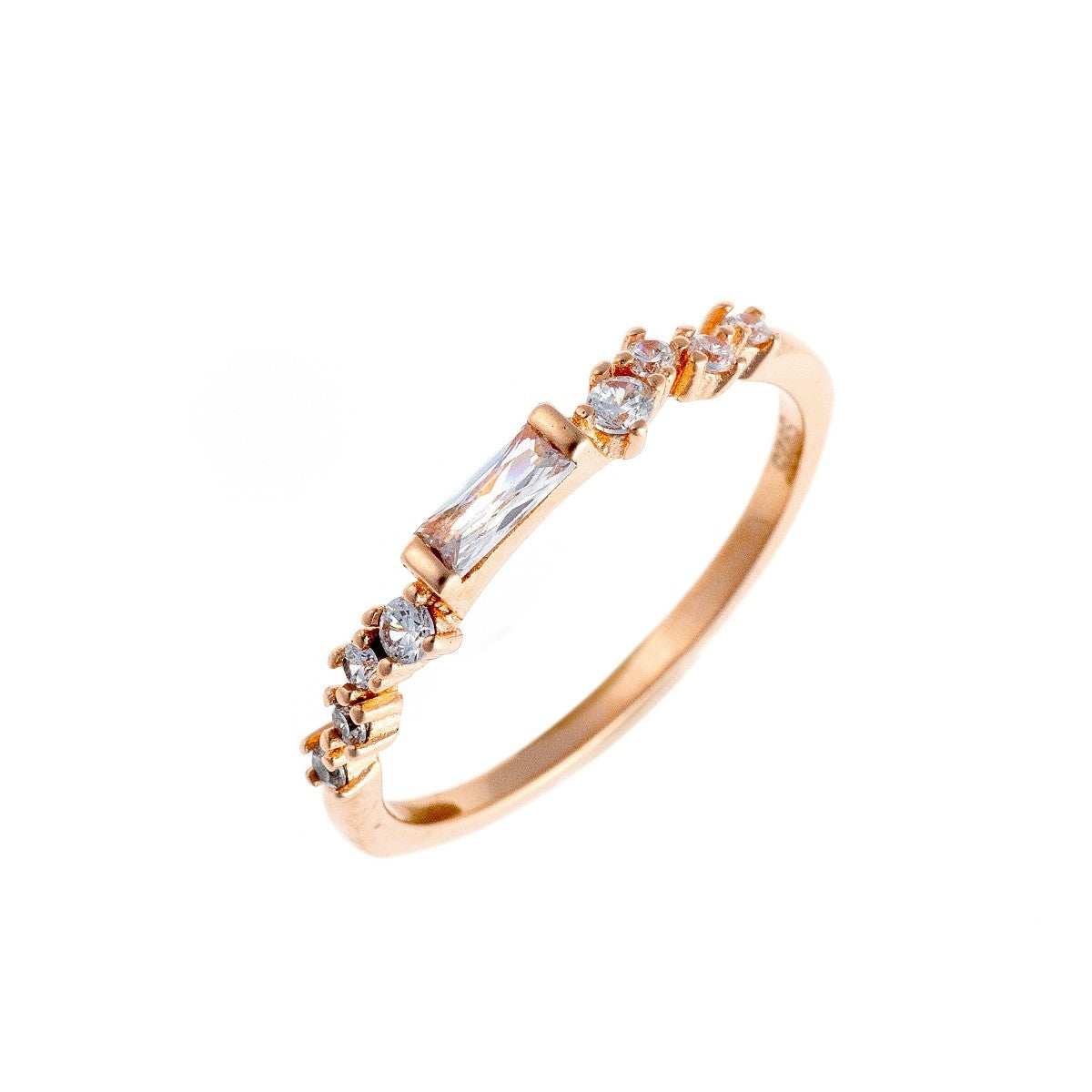 Sidabrinis paauksuotas žiedas su pailgu cirkoniu
