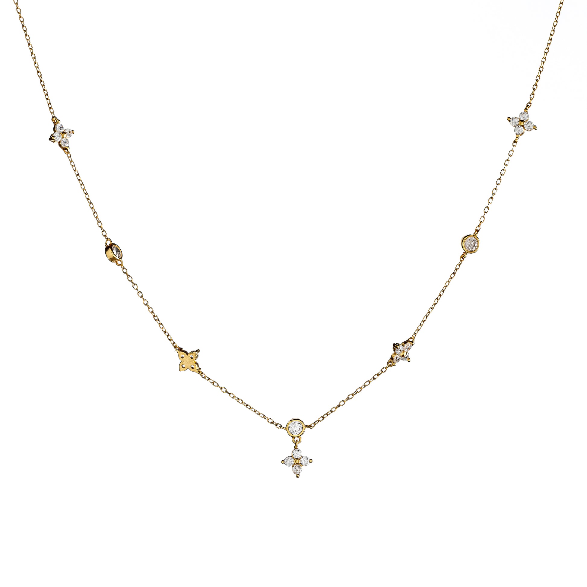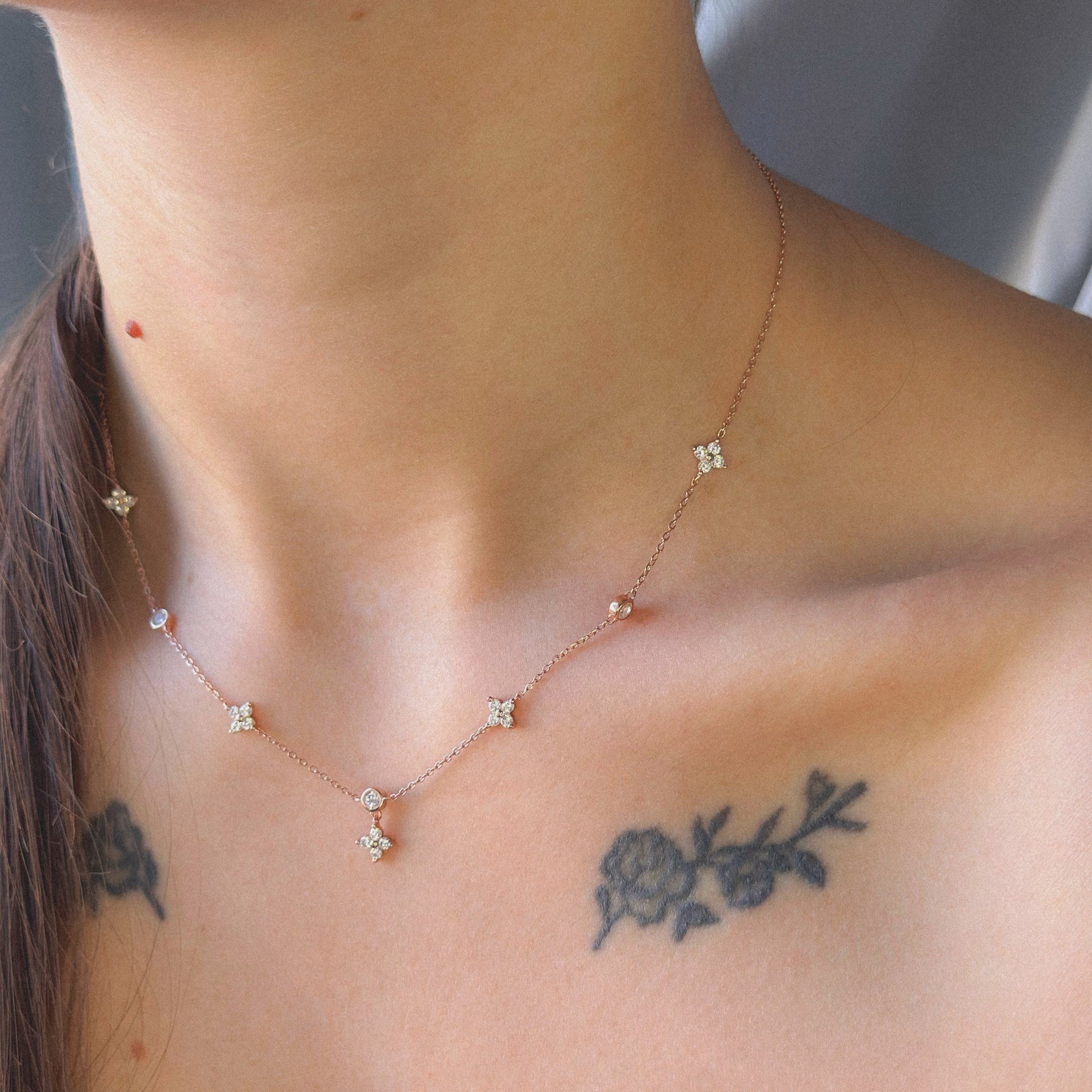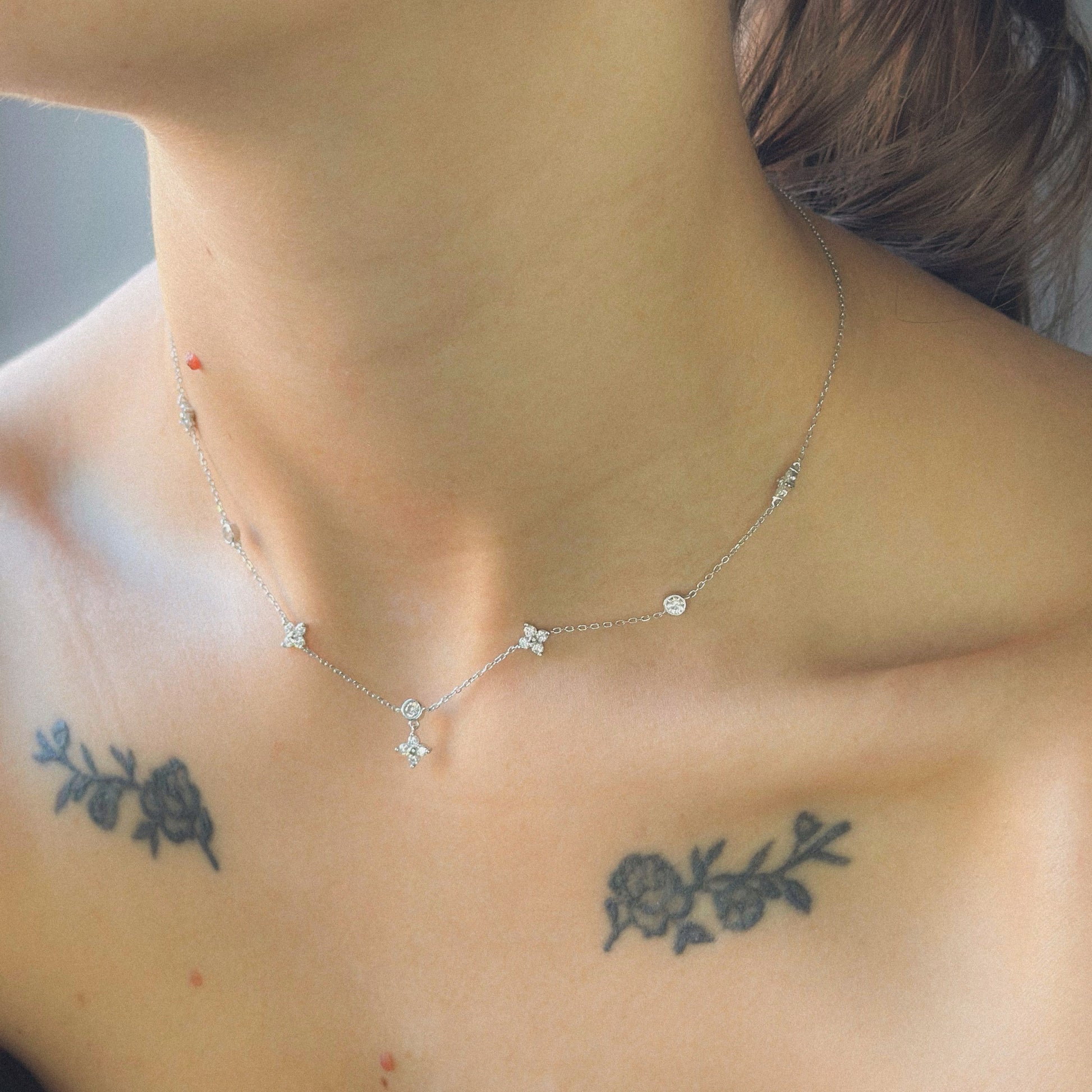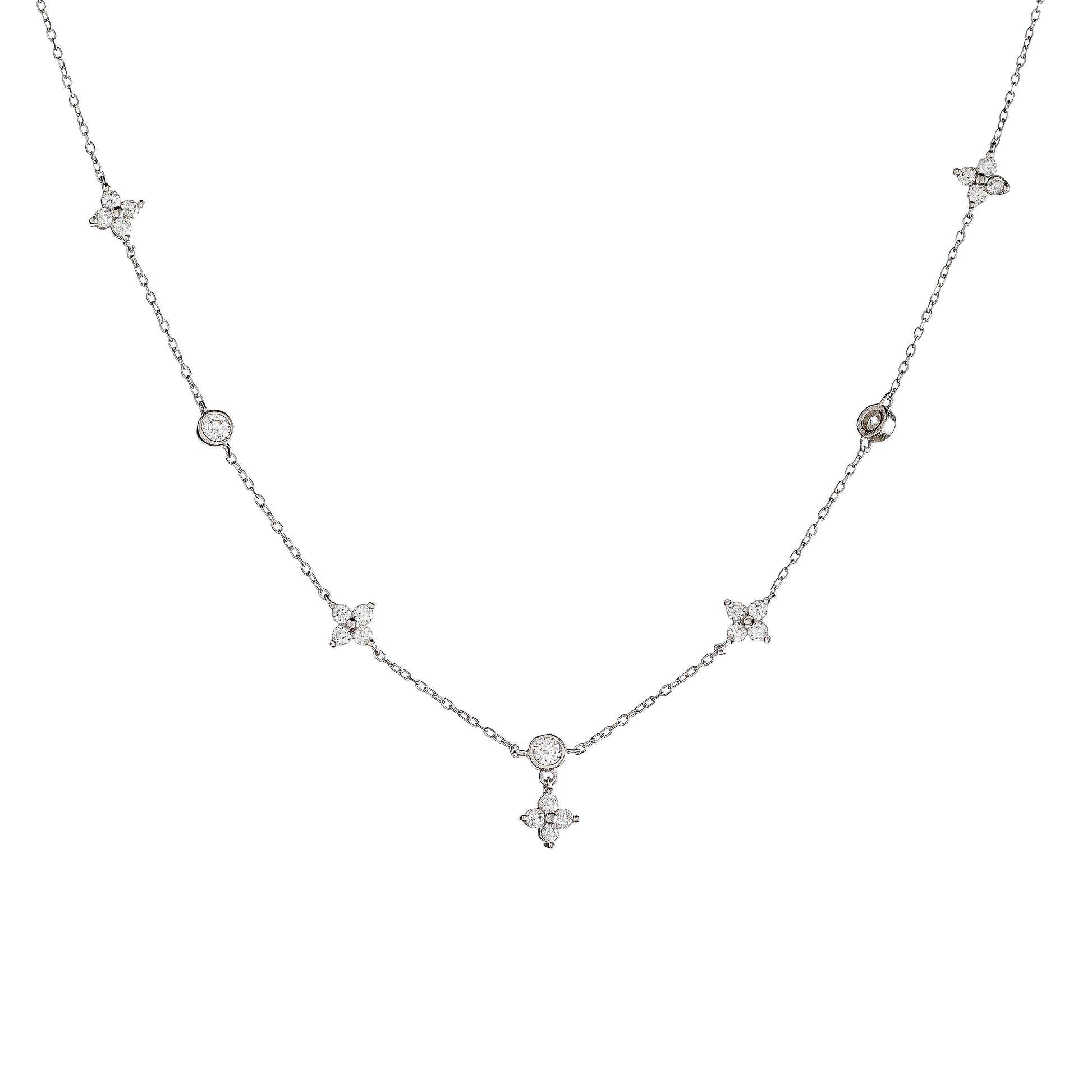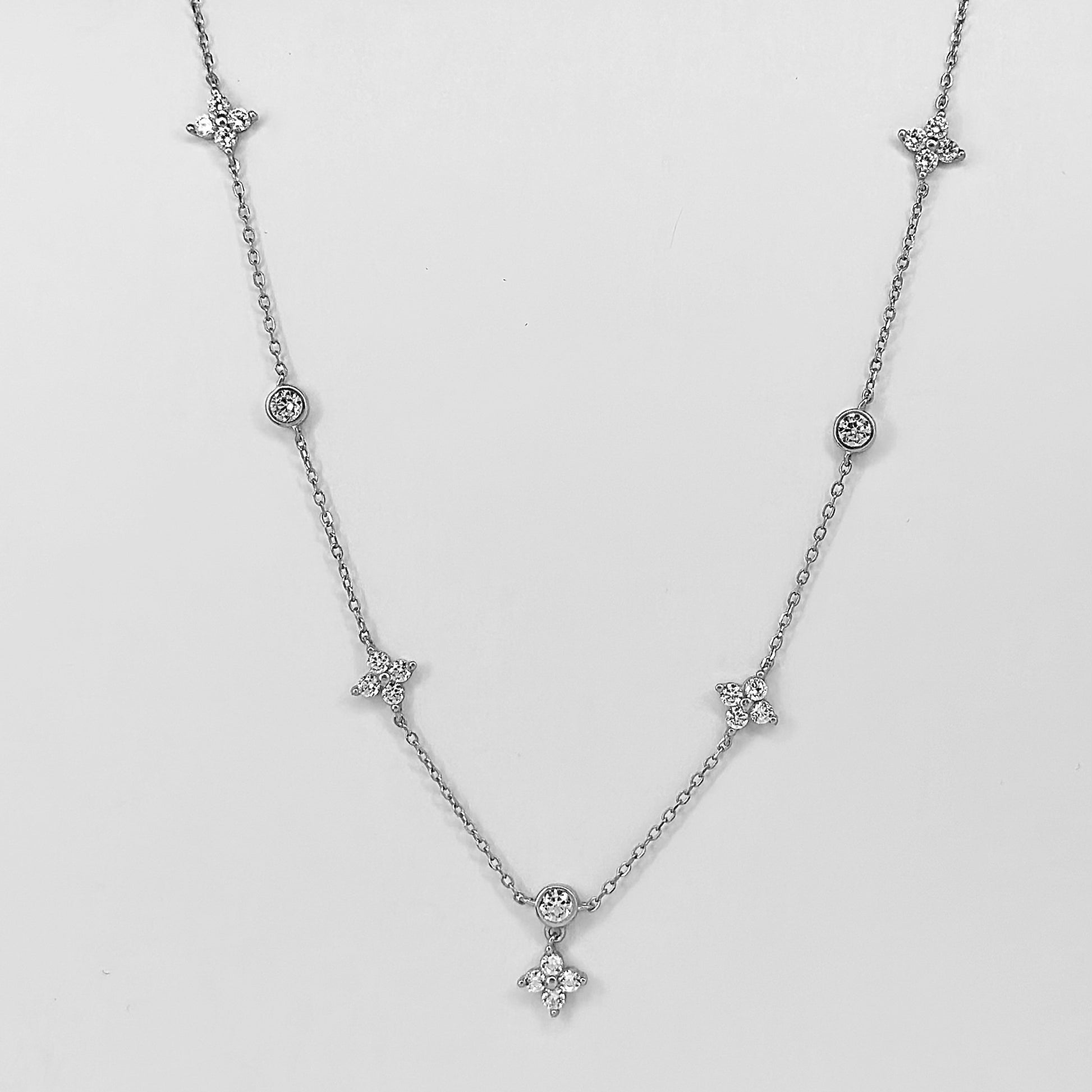 Sidabrinis pakabukas "Gėlytės" su cirkoniais ir grandinėle