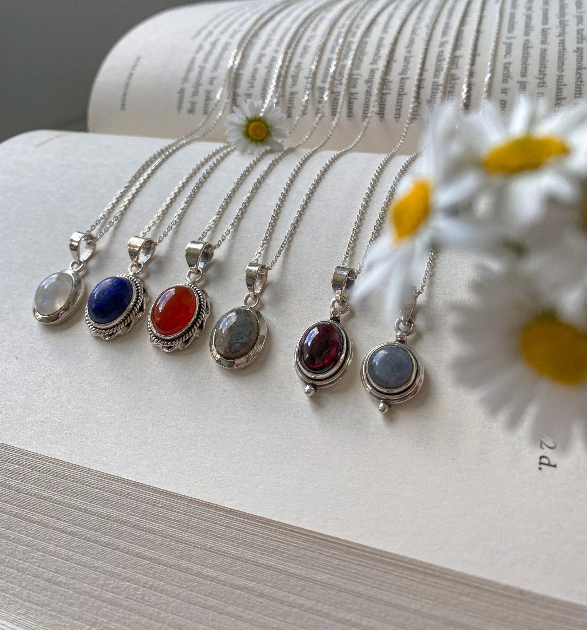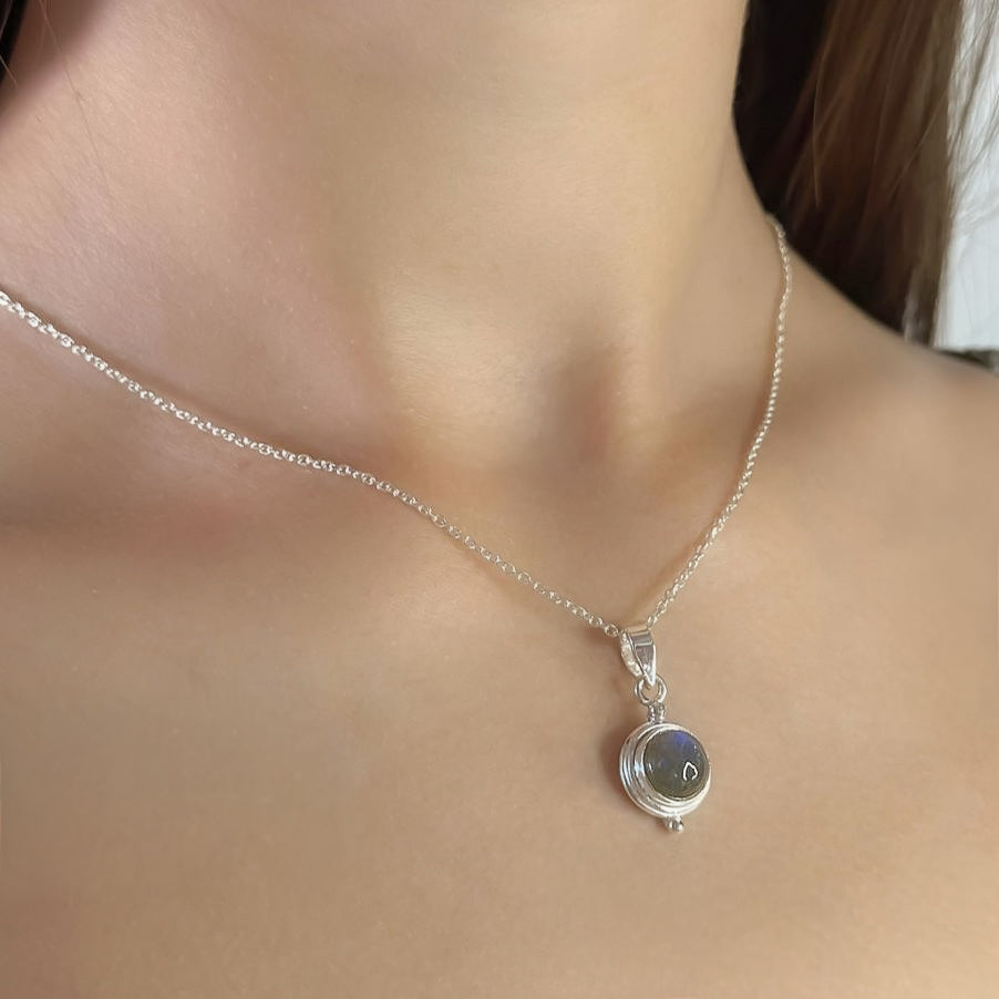 Sidabrinis pakabukas su apvaliu labradorito akmeniu ir grandinėle