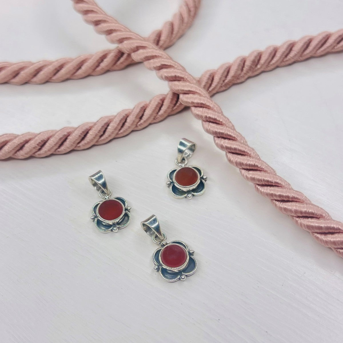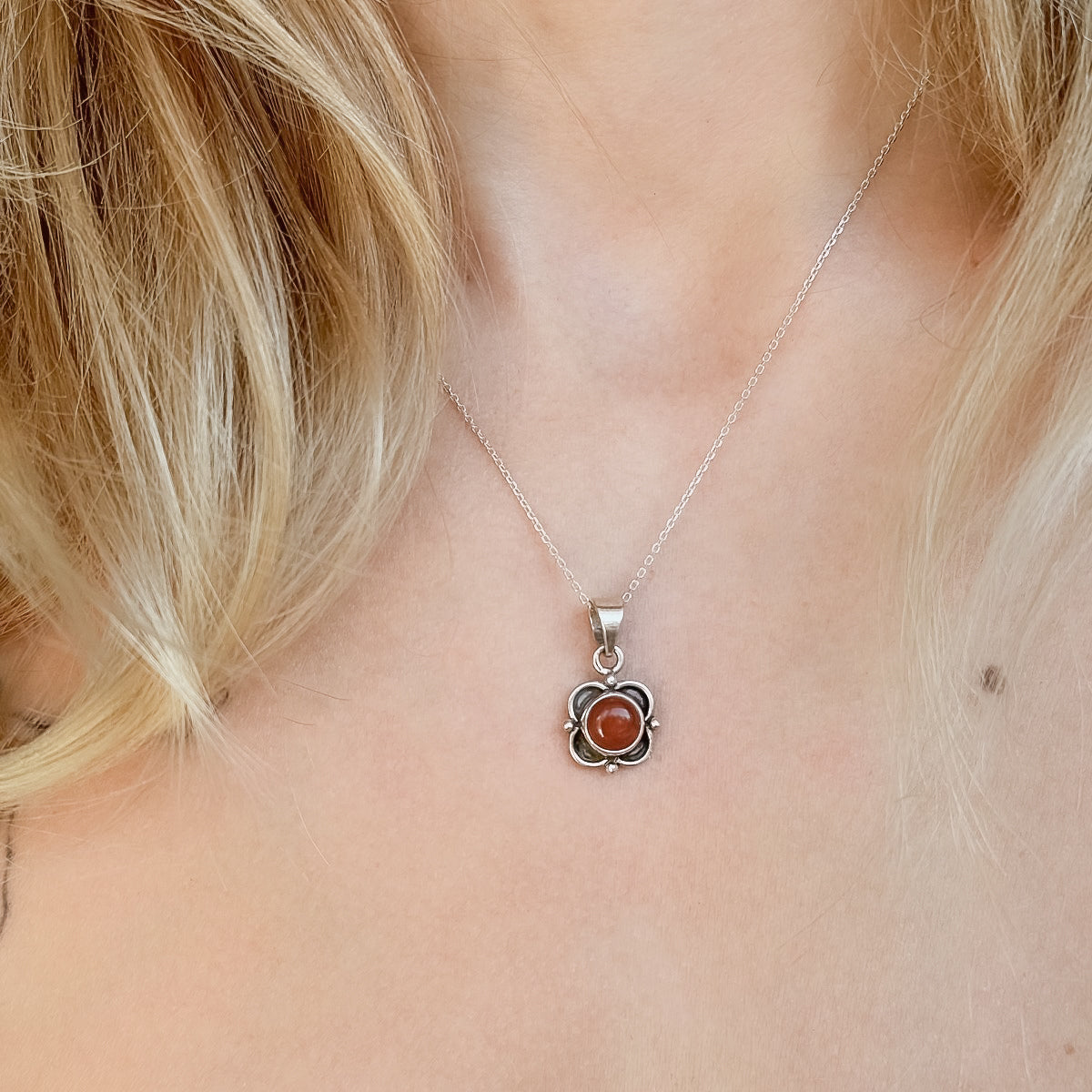 Sidabrinis pakabukas su karneoliu ir grandinėle