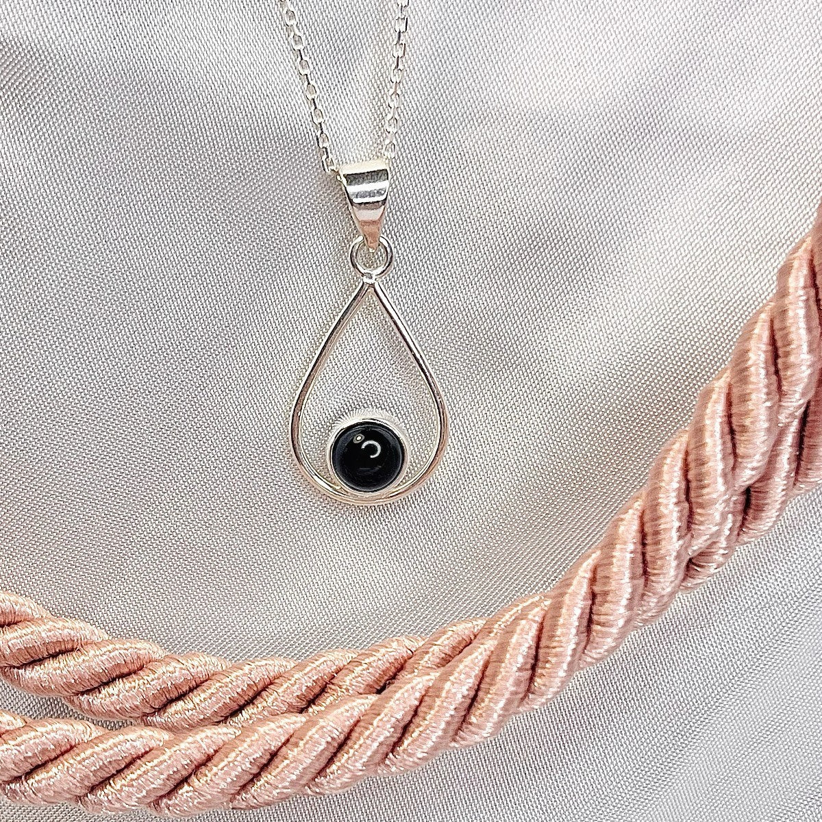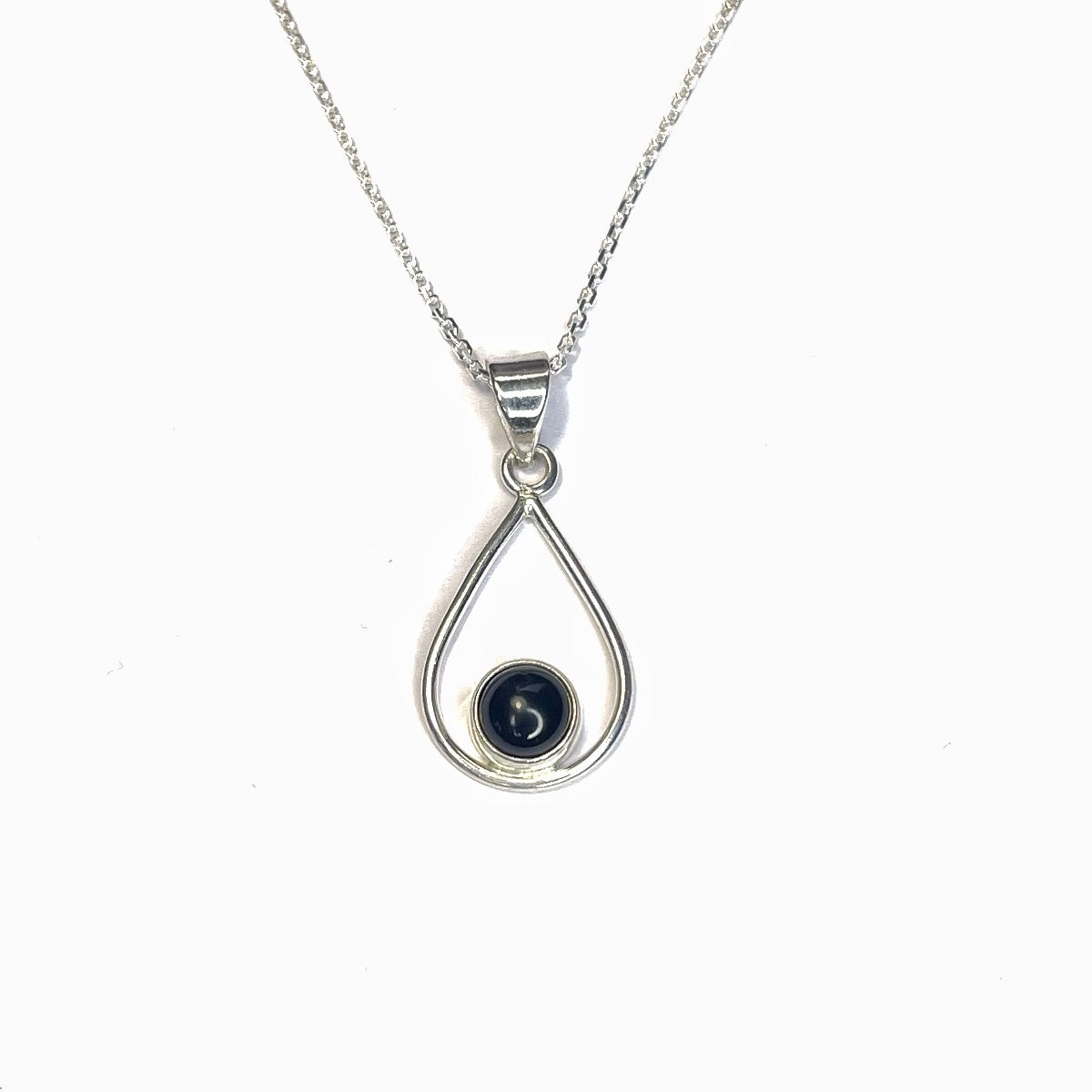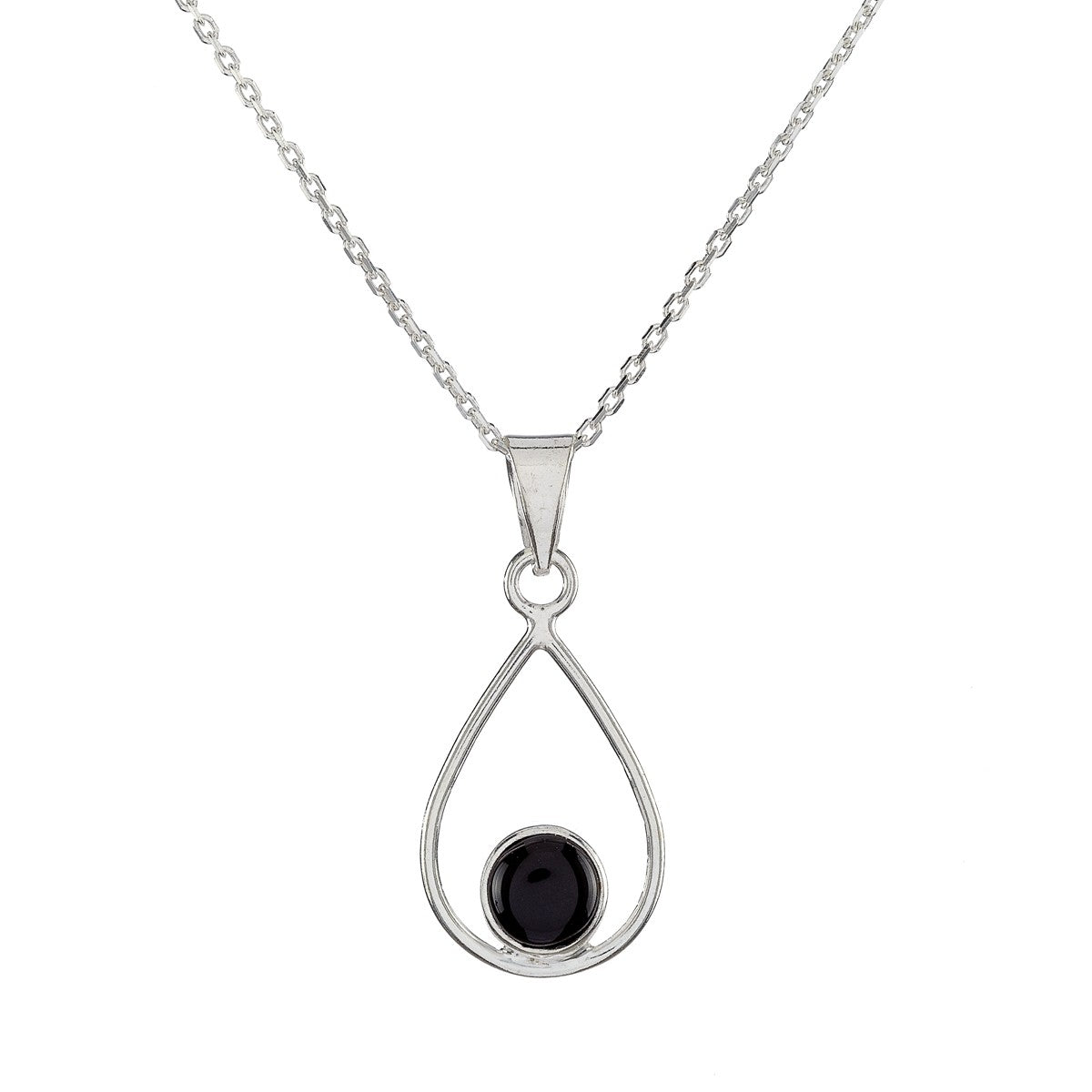 Sidabrinis pakabukas su onikso akmeniu ir grandinėle