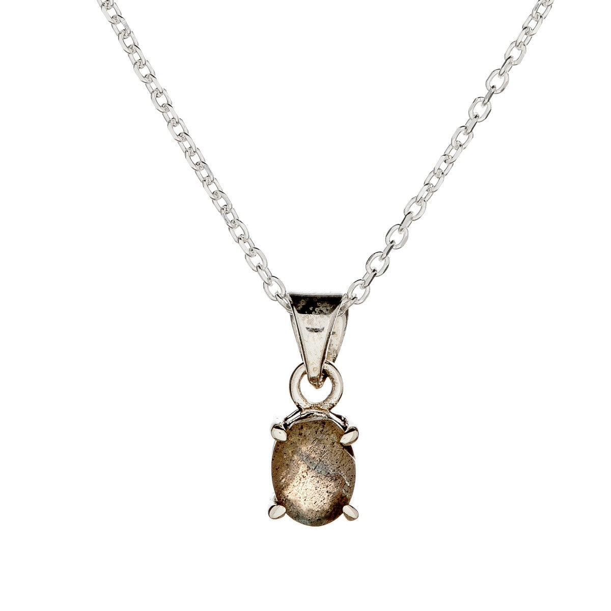 Sidabrinis pakabukas su ovaliu labradorito akmeniu ir grandinėle