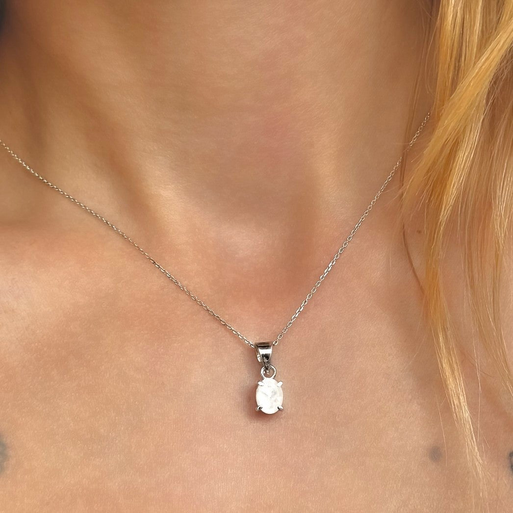 Sidabrinis pakabukas su ovaliu mėnulio akmeniu ir grandinėle