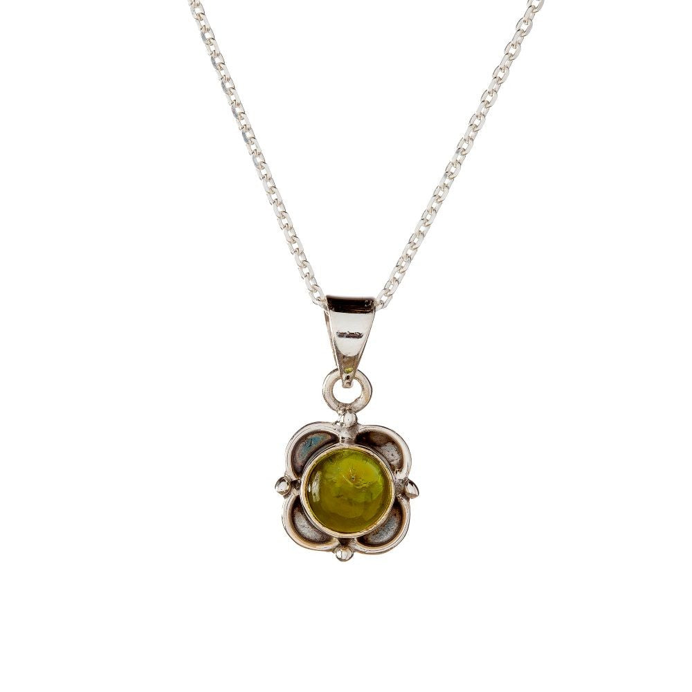 Sidabrinis pakabukas su peridoto akmeniu ir grandinėle