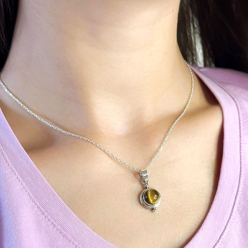 Sidabrinis pakabukas su tigro akies akmeniu ir grandinėle