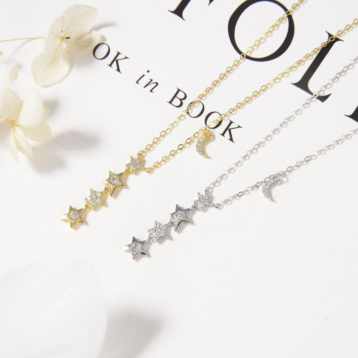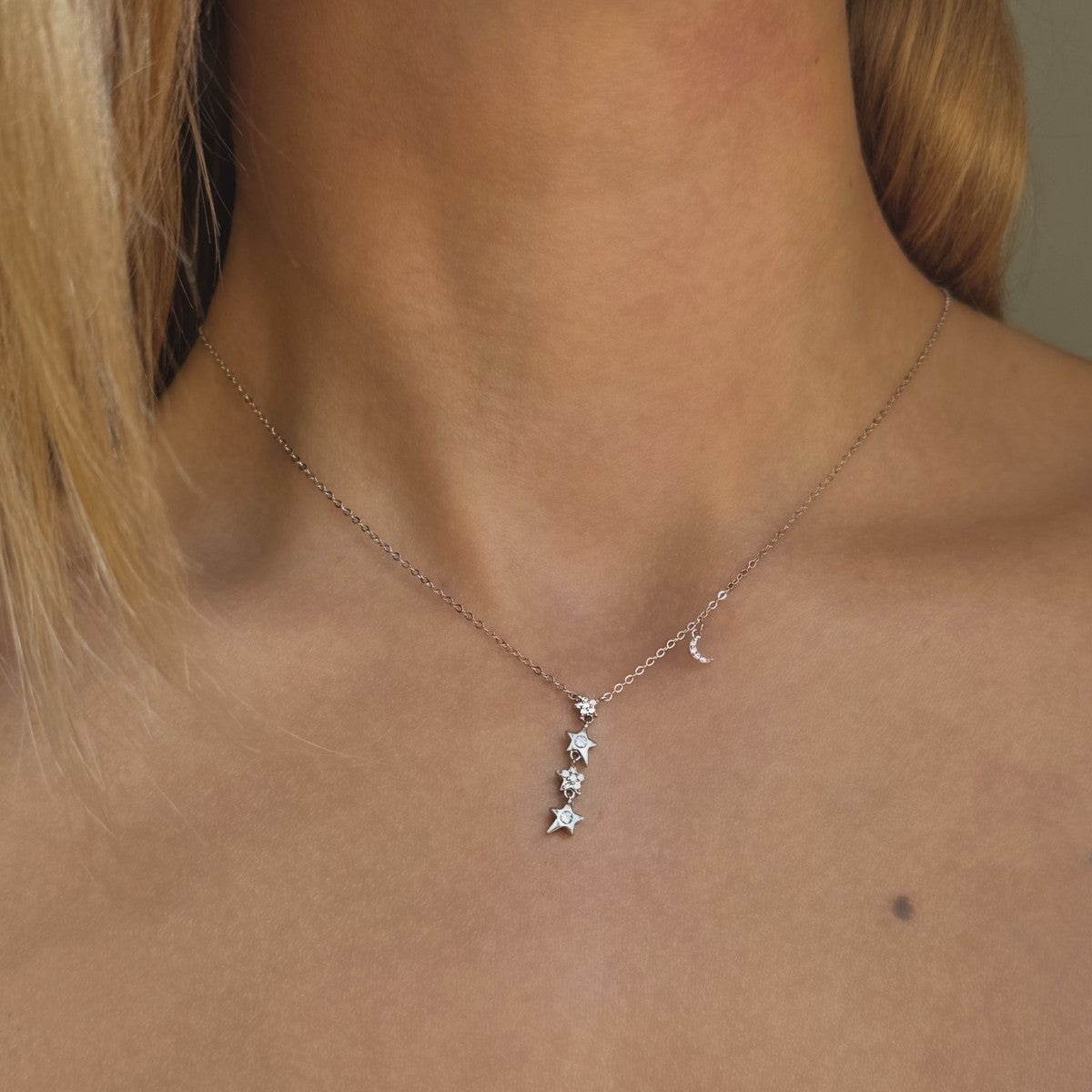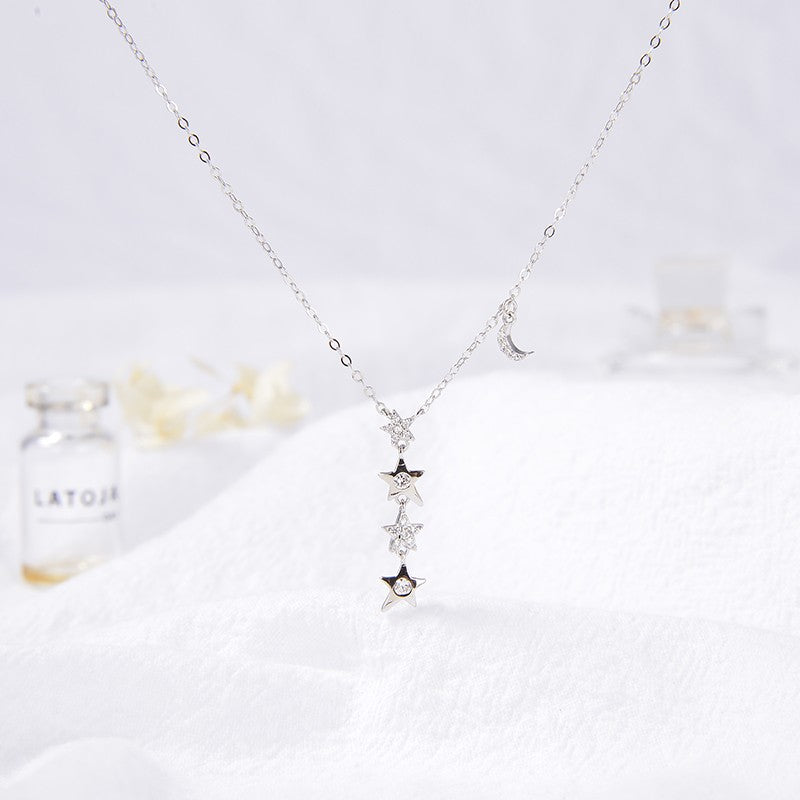 Sidabrinis pakabukas su žvaigždutėmis ir mėnuliu