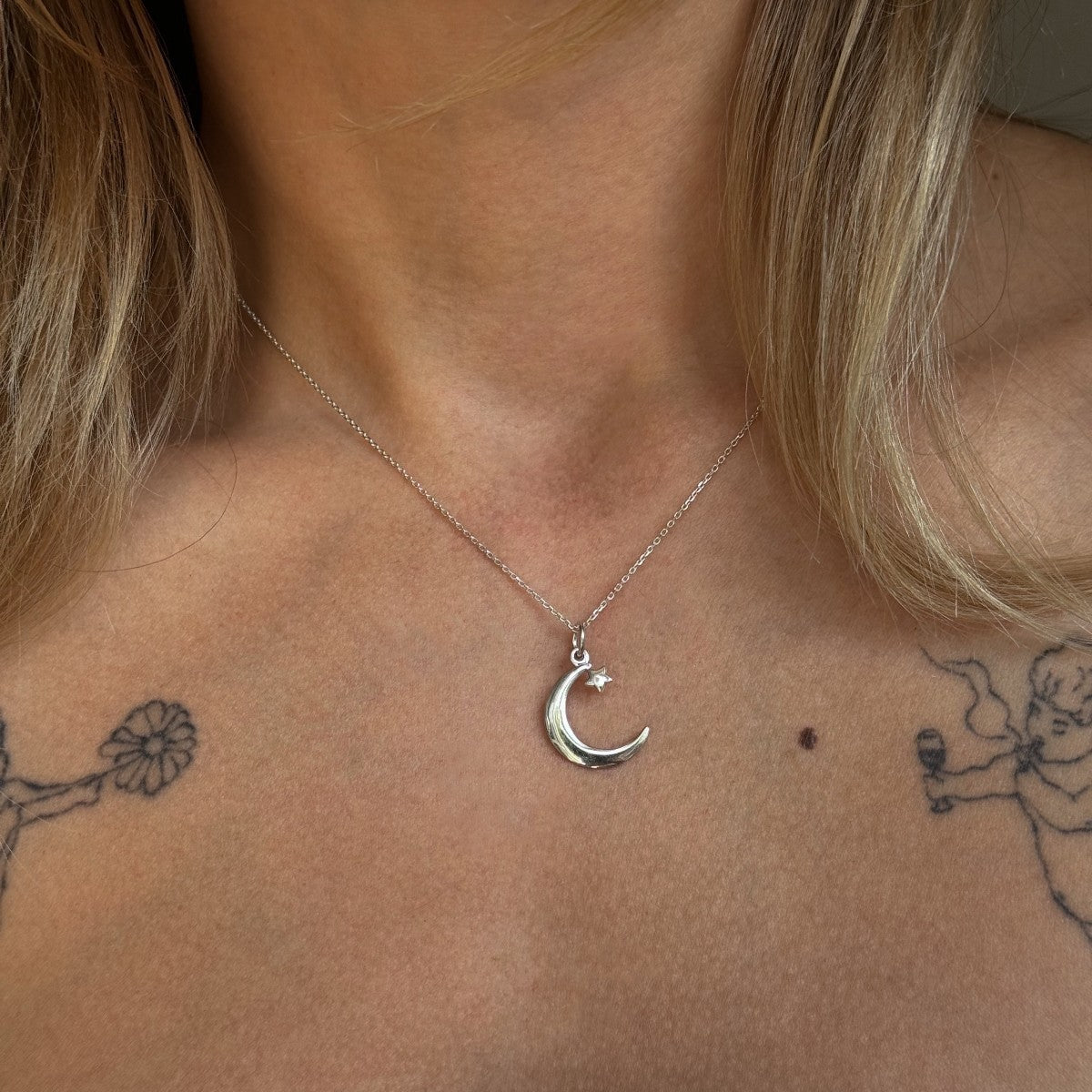 Sidabrinis pakabukas "Žvaigždutė su mėnuliu" ir grandinėle