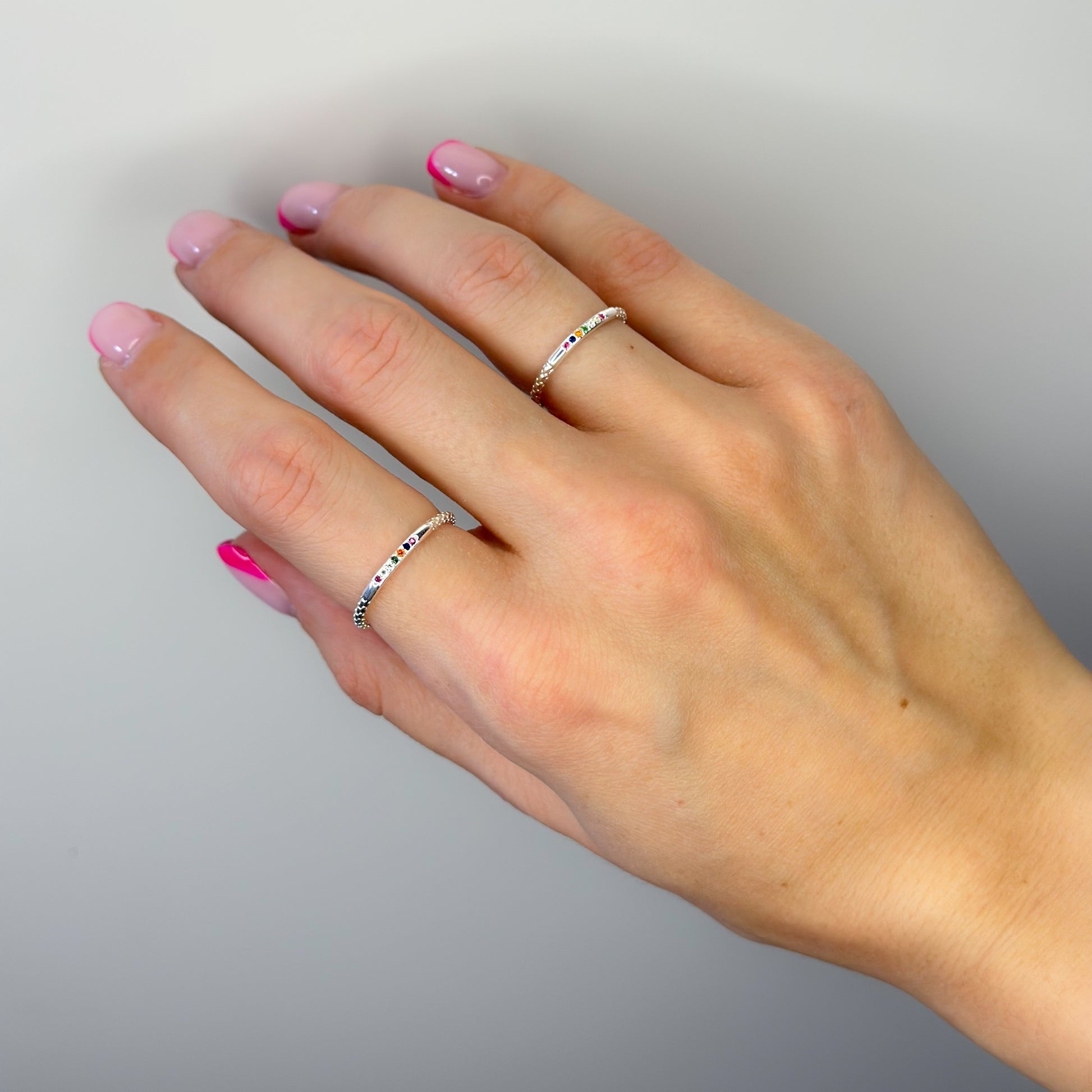 Sidabrinis reg. dydžio žiedas su spalvotais cirkoniais