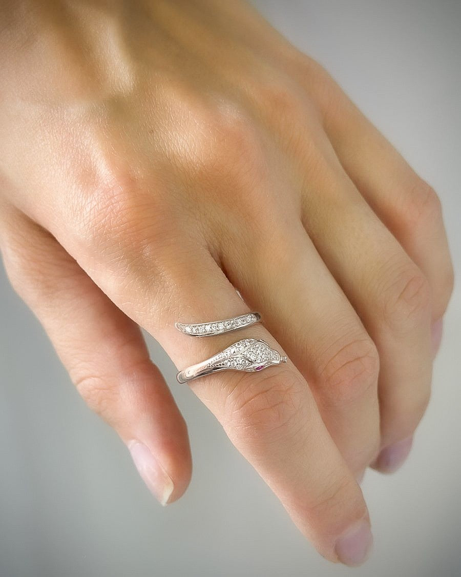 Sidabrinis reguliuojamo dydžio žiedas gyvatė