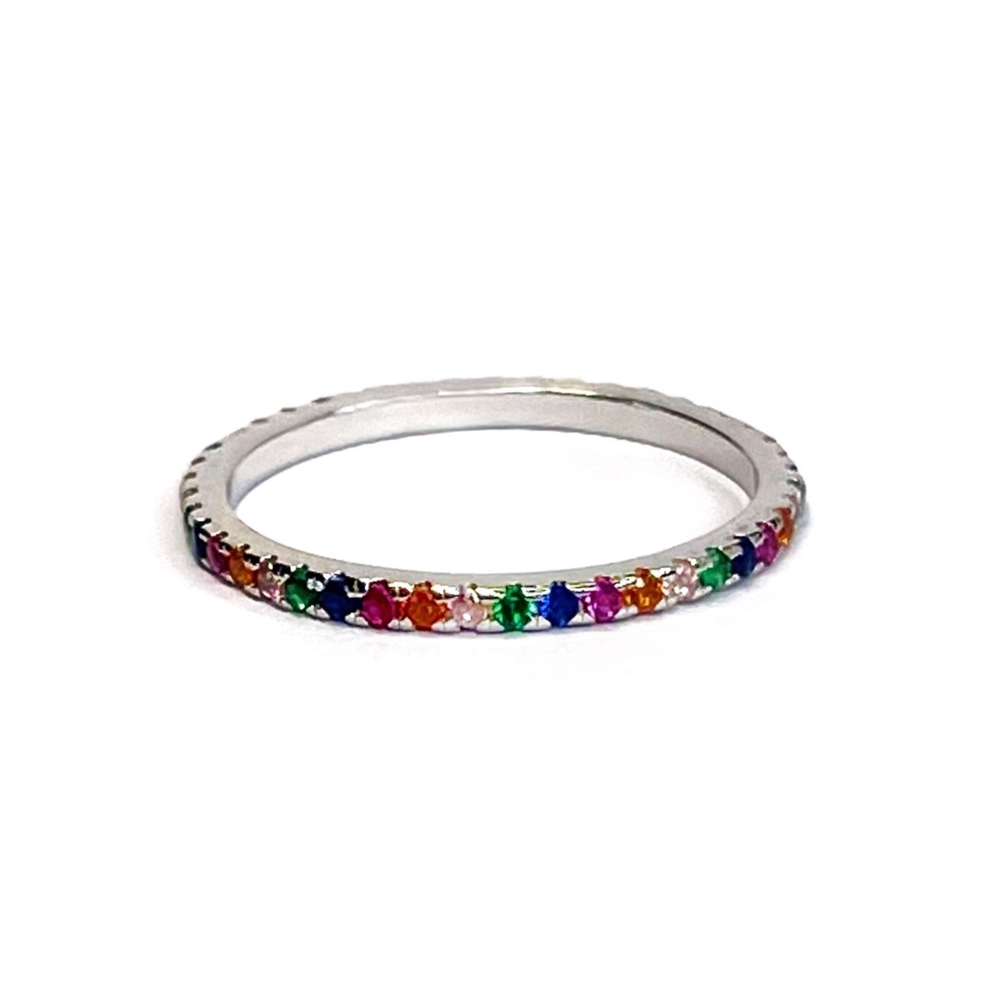 Sidabrinis rodžiuotas 1,5mm žiedelis su spalvotu cirkoniu