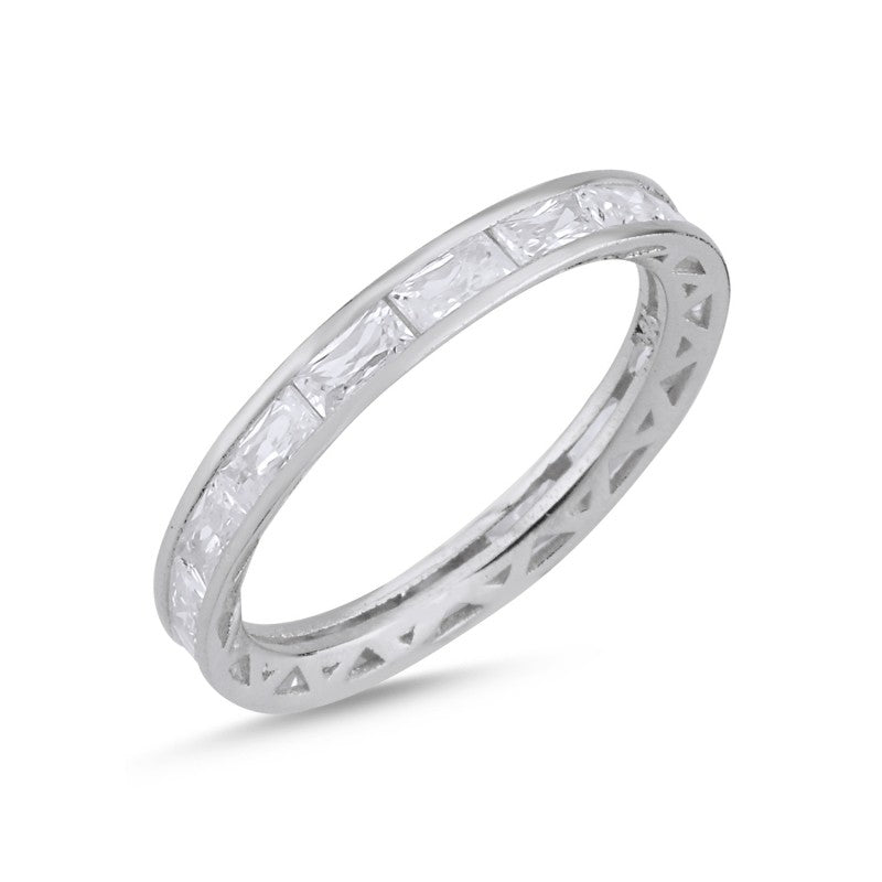 Sidabrinis rodžiuotas 3mm pločio žiedas su pailgais cirkoniais