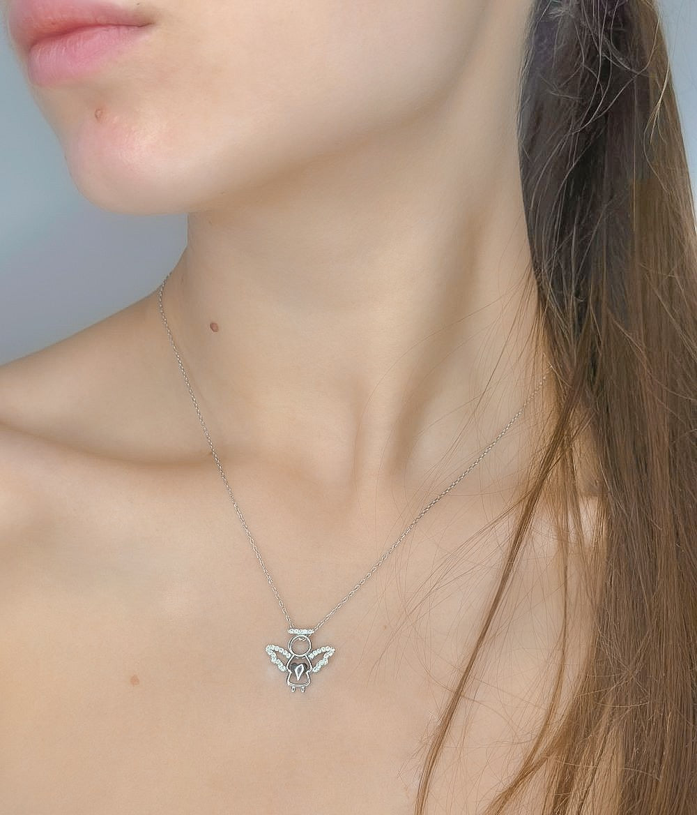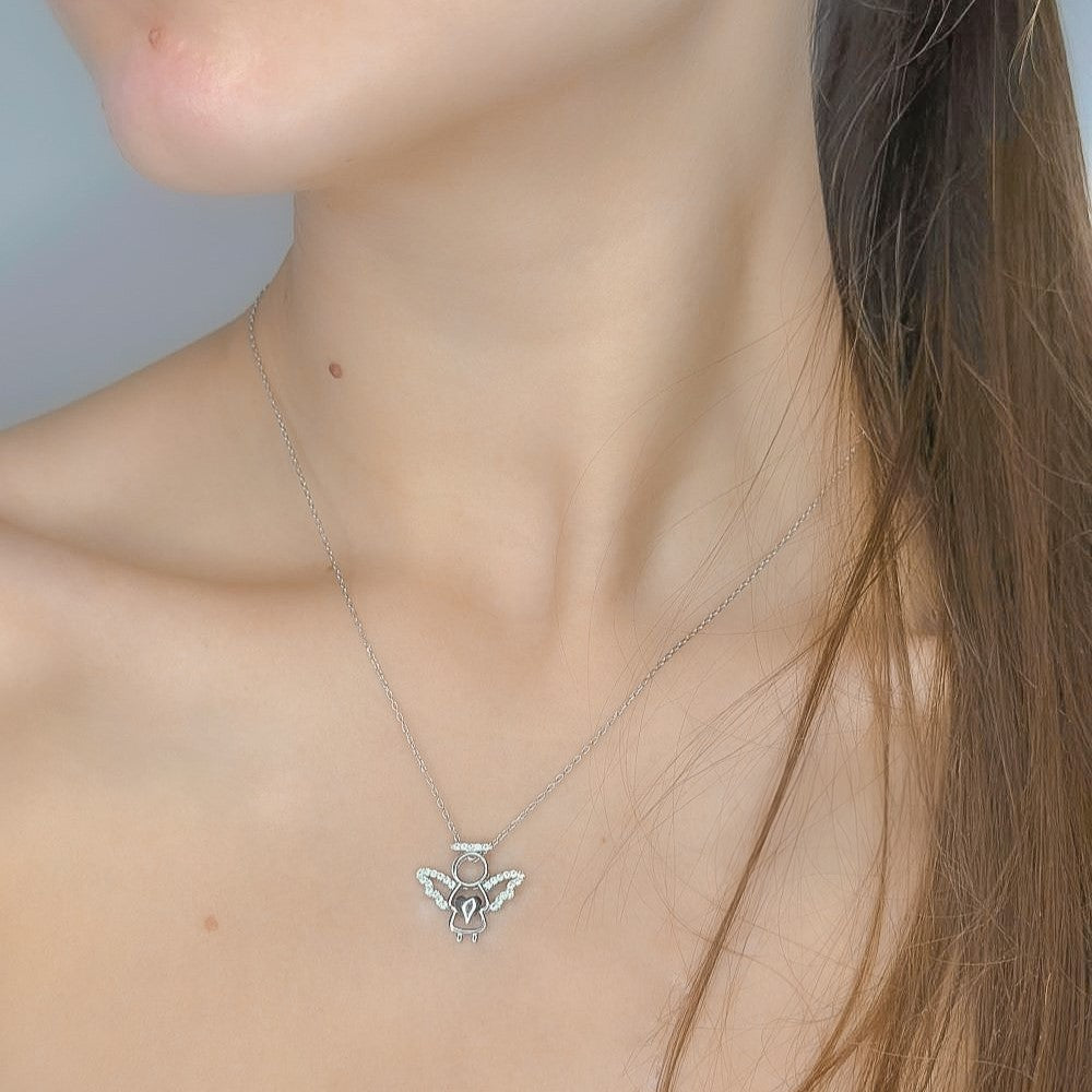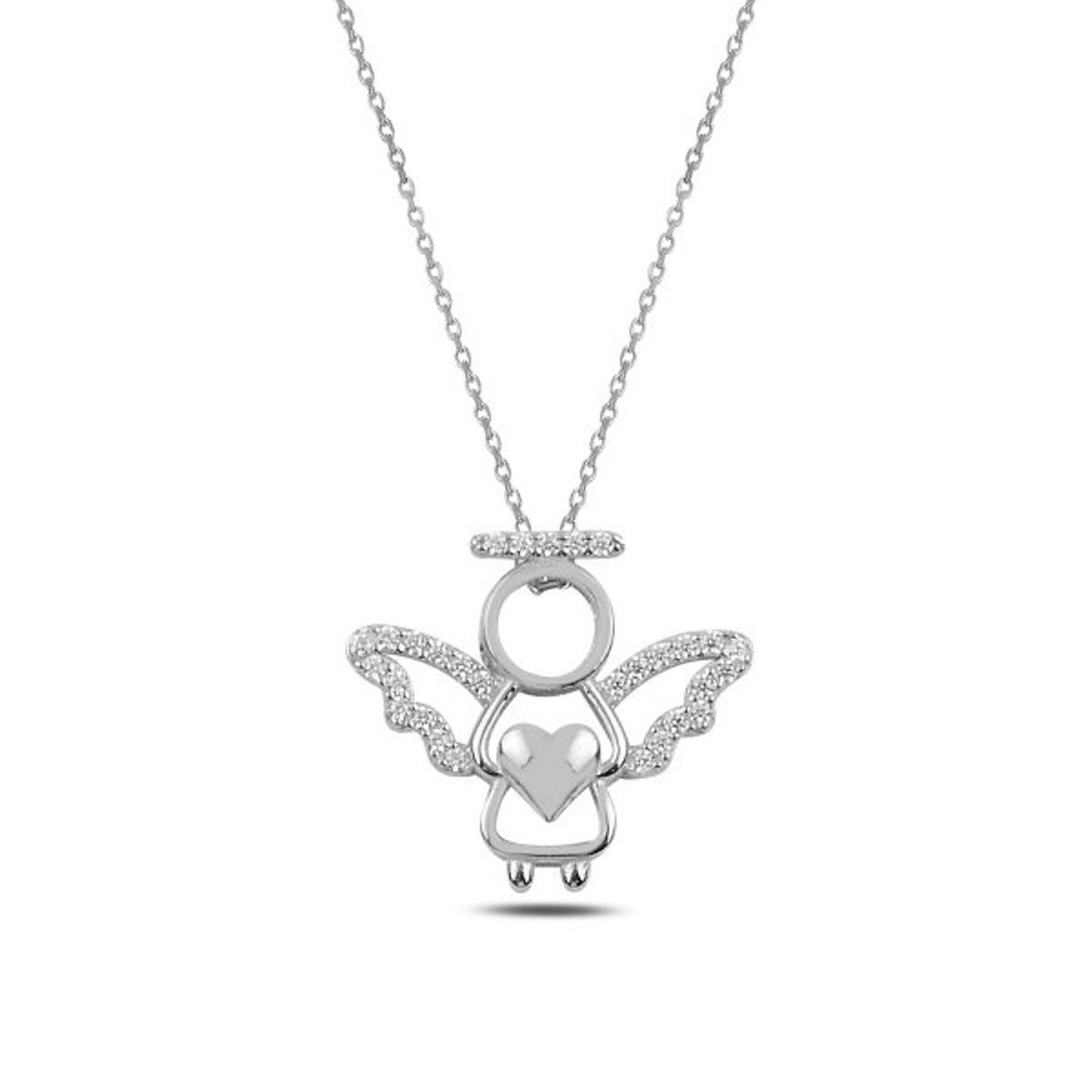 Sidabrinis rodžiuotas angeliukas su cirkoniu ir grandinėle