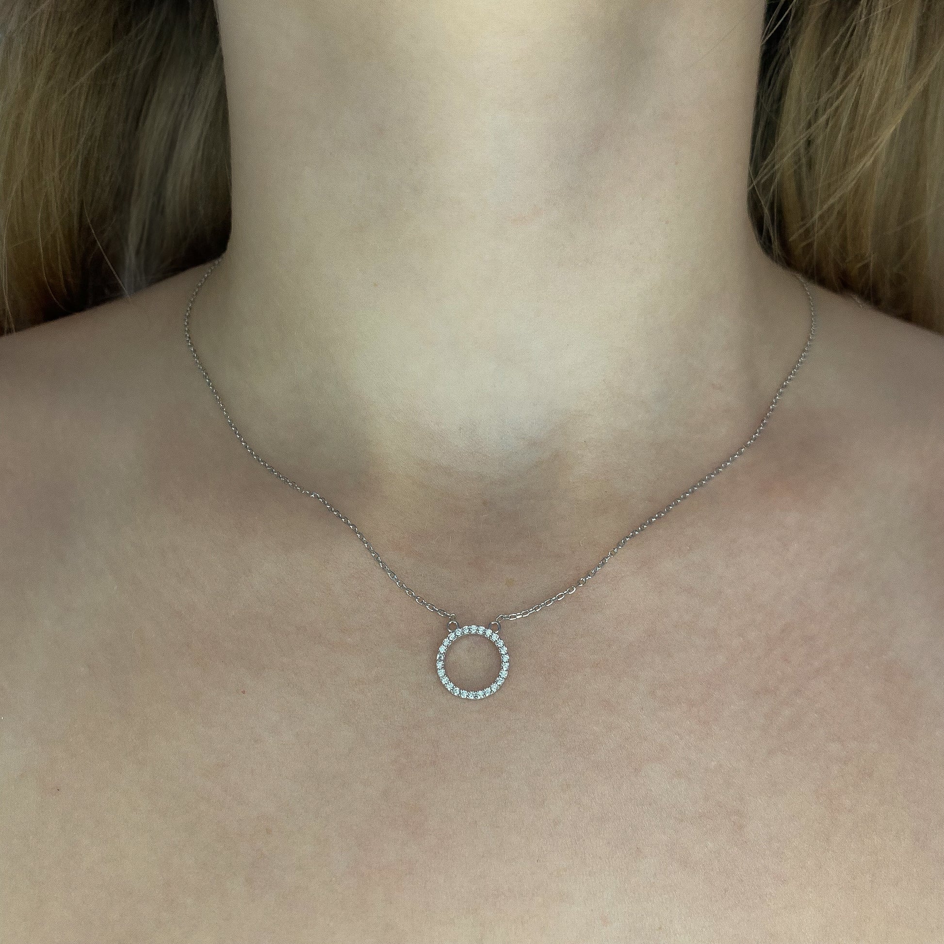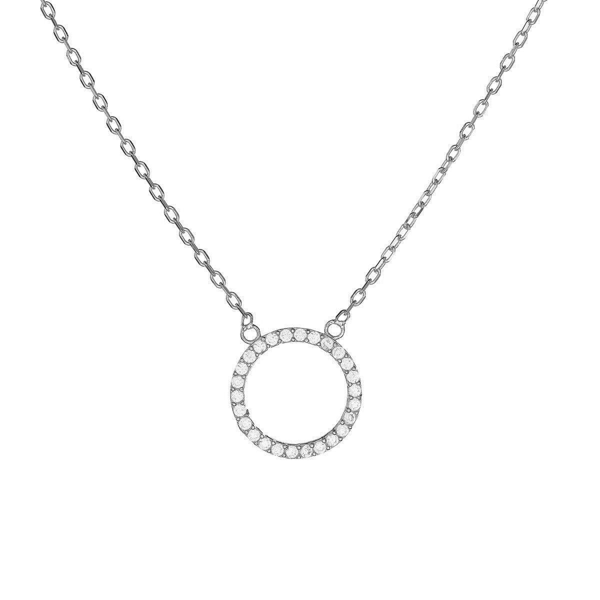 Sidabrinis rodžiuotas apvalus pakabukas su cirkoniu ir grandinėle