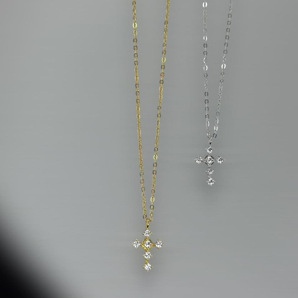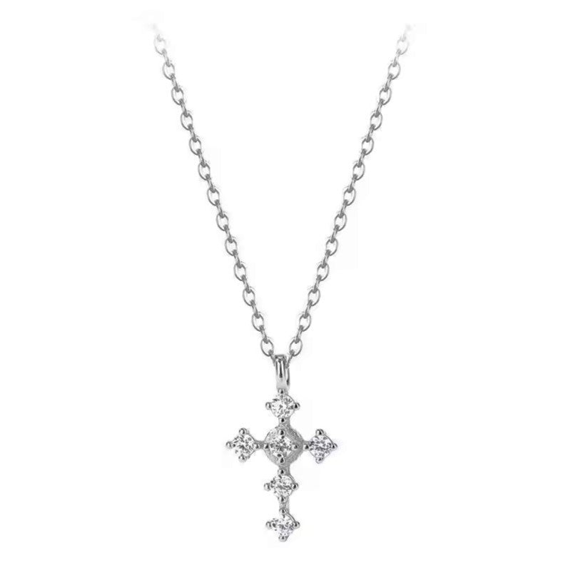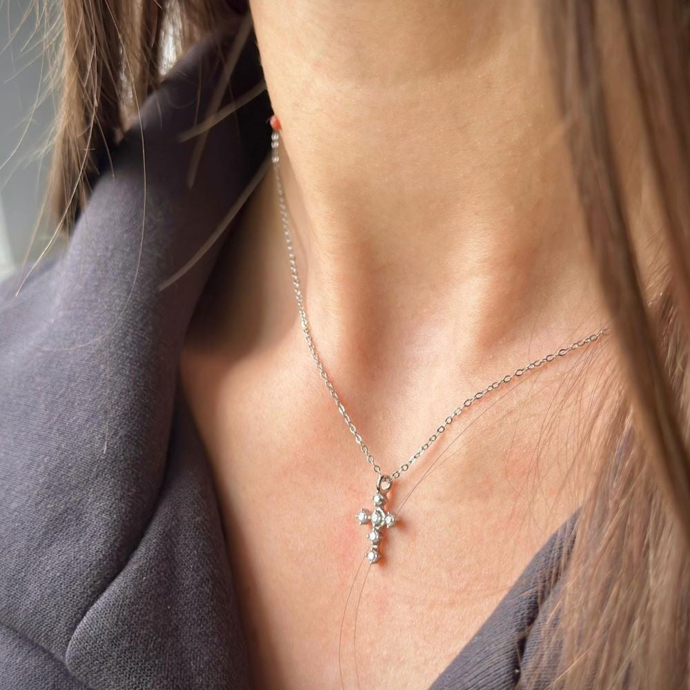 Sidabrinis rodžiuotas kryželis su cirkoniais ir grandinėle