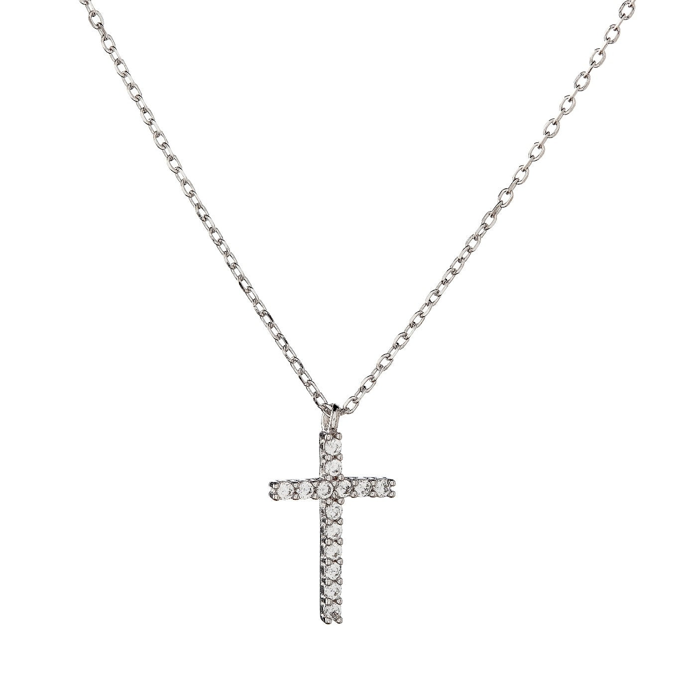 Sidabrinis rodžiuotas kryželis su cirkoniais ir grandinėle