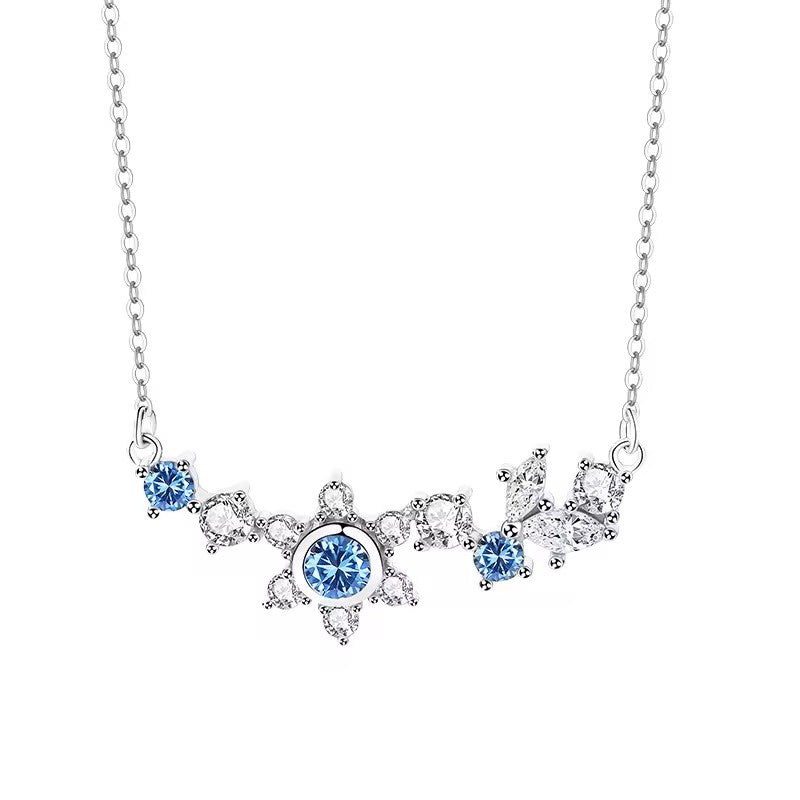 Sidabrinis rodžiuotas pakabukas "Gėlytė" su žydrais cirkoniais ir grandinėle