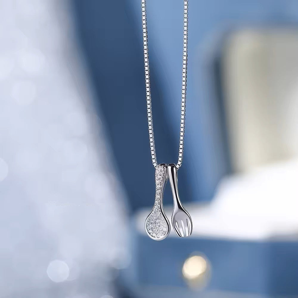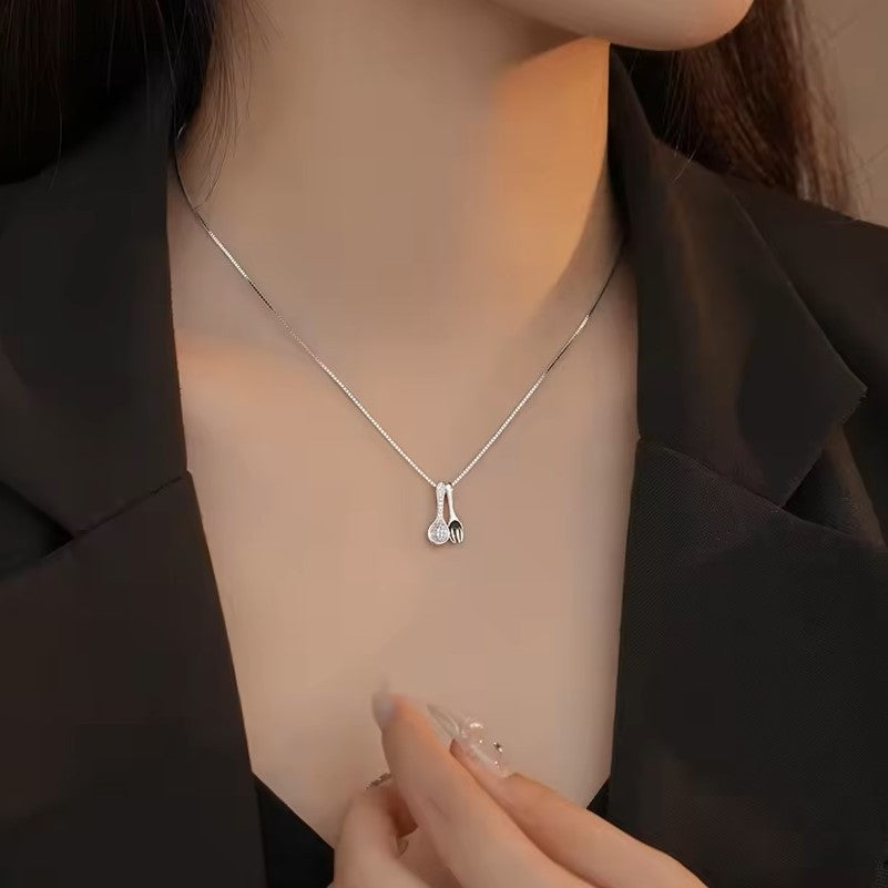 Sidabrinis rodžiuotas pakabukas "Šaukštas ir šakutė" su grandinėle