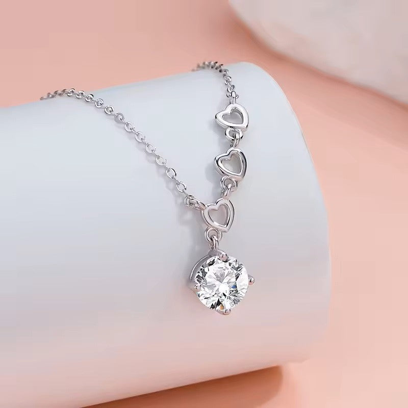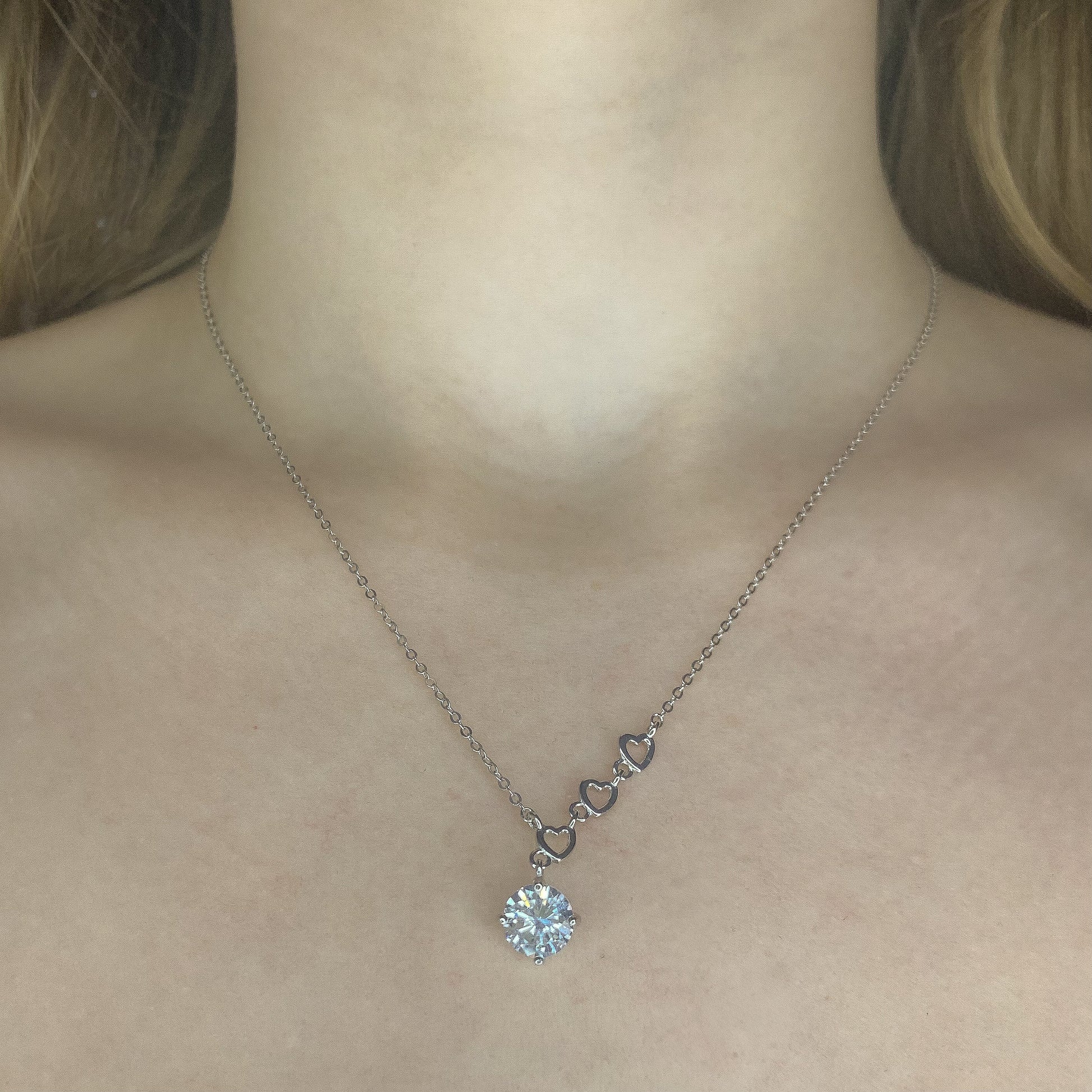 Sidabrinis rodžiuotas pakabukas širdelės su cirkoniu ir grandinėle