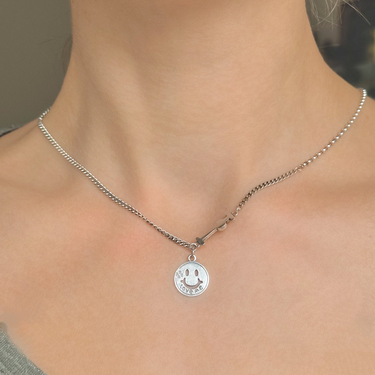 Sidabrinis rodžiuotas pakabukas "Smile" su grandinėle